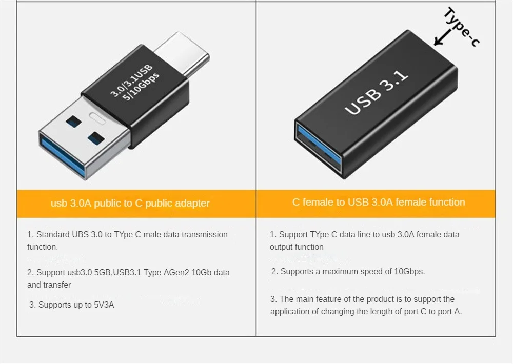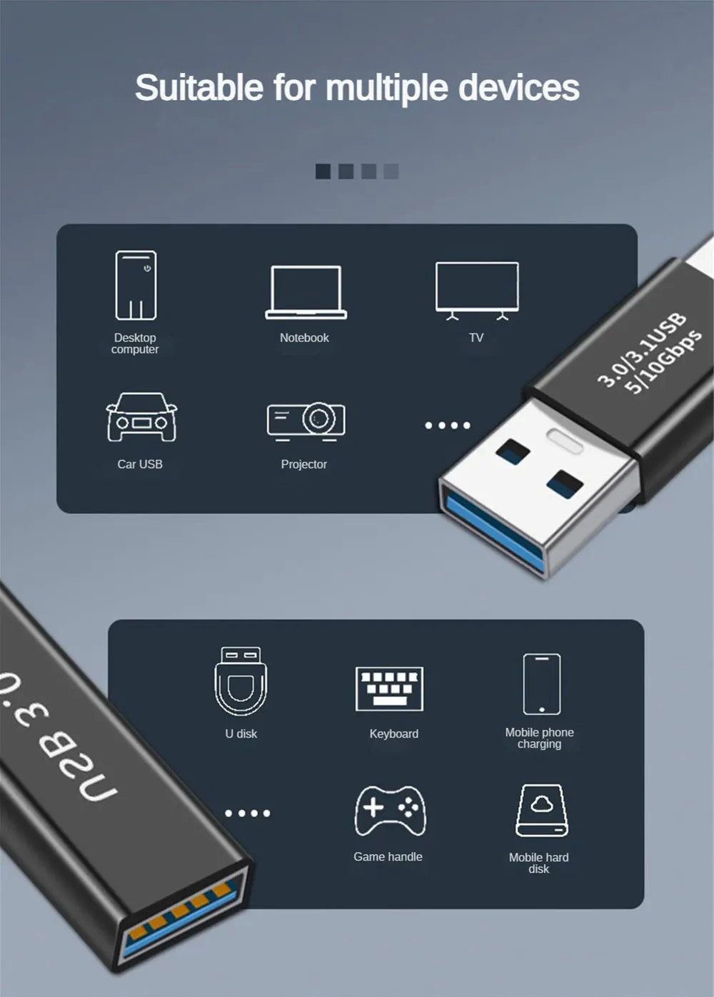 Estilo: USB3.0 hembra a macho, USB3.0 hembra a hembra, USB3.0 macho a macho, USB macho a tipo C macho, USB hembra a tipo C hembra