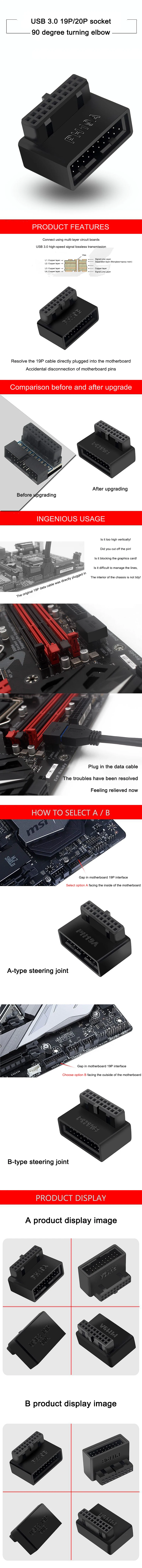 Tipo: placa base de computadora USB3.0 19P 20P adaptador