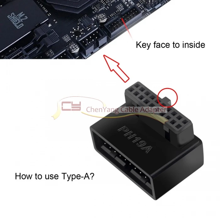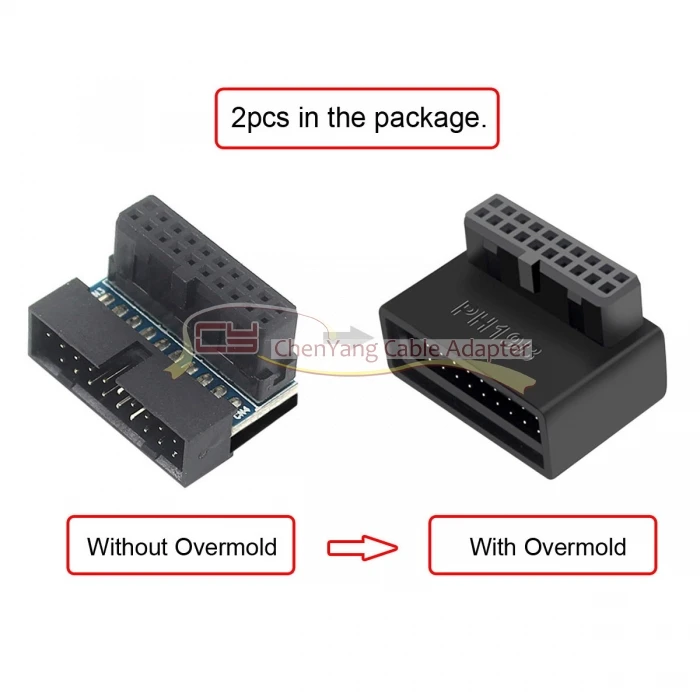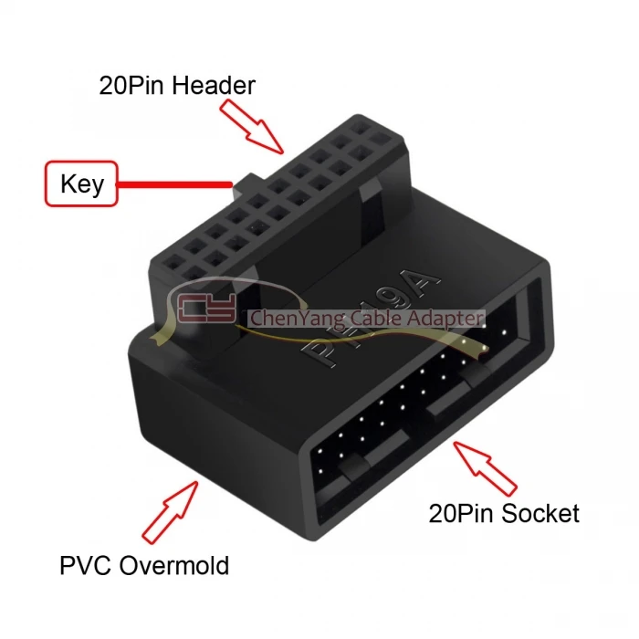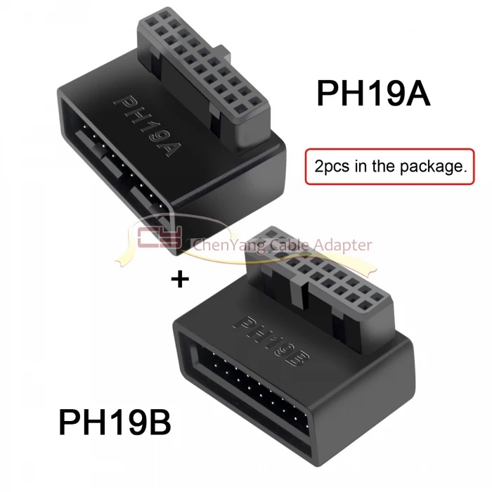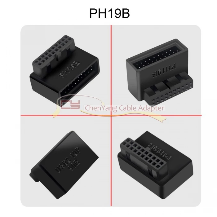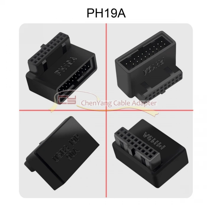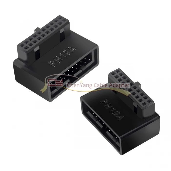 1 juego USB 3,0 20 pines macho a hembra adaptador de extensión arriba y abajo en ángulo 90 grados Overmold