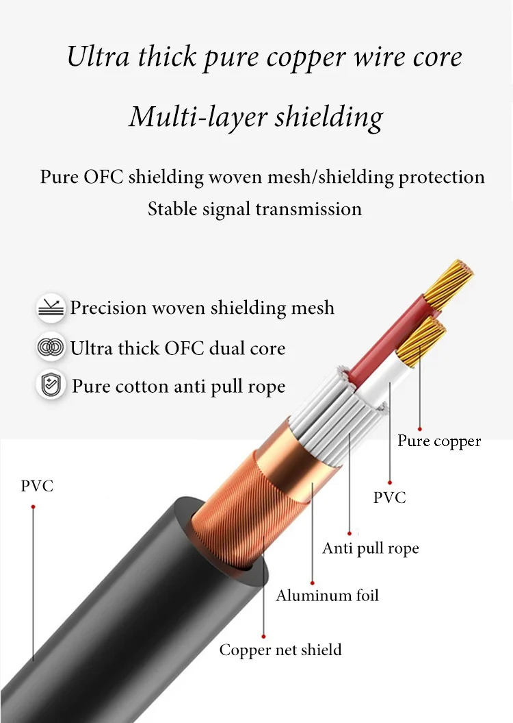 ⭐【Núcleo de cable ultragrues】: se utiliza cobre puro 99.99% como conductor para la extensión de audio, y se utilizan conductores de alta calidad para garantizar que la calidad del sonido no disminuya. El núcleo de alambre ultra grueso de 6,0 MM está protegido y aislado de interferencias externas por papel de aluminio y malla tejida de metal, e incluso si se utiliza una longitud de 10M, no afectará la transmisión de la señal.