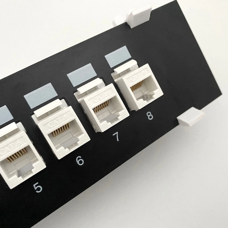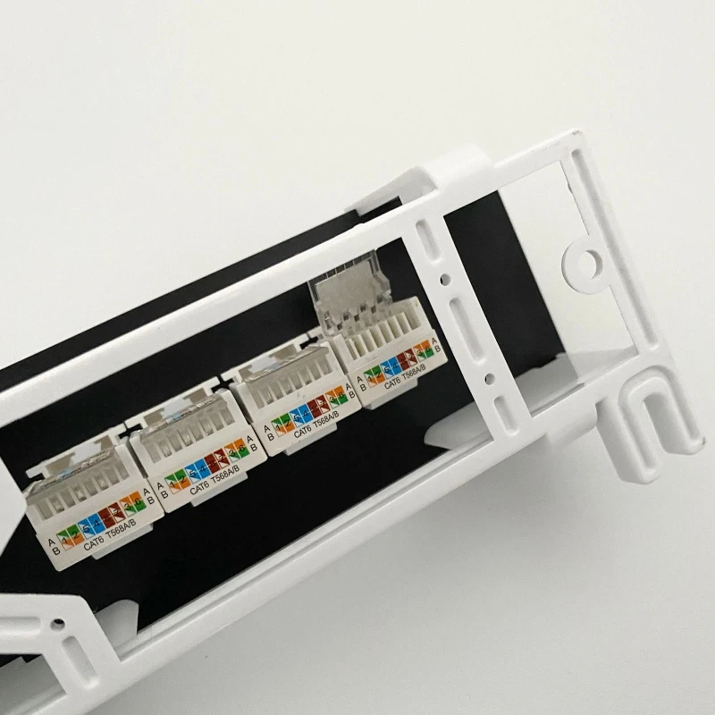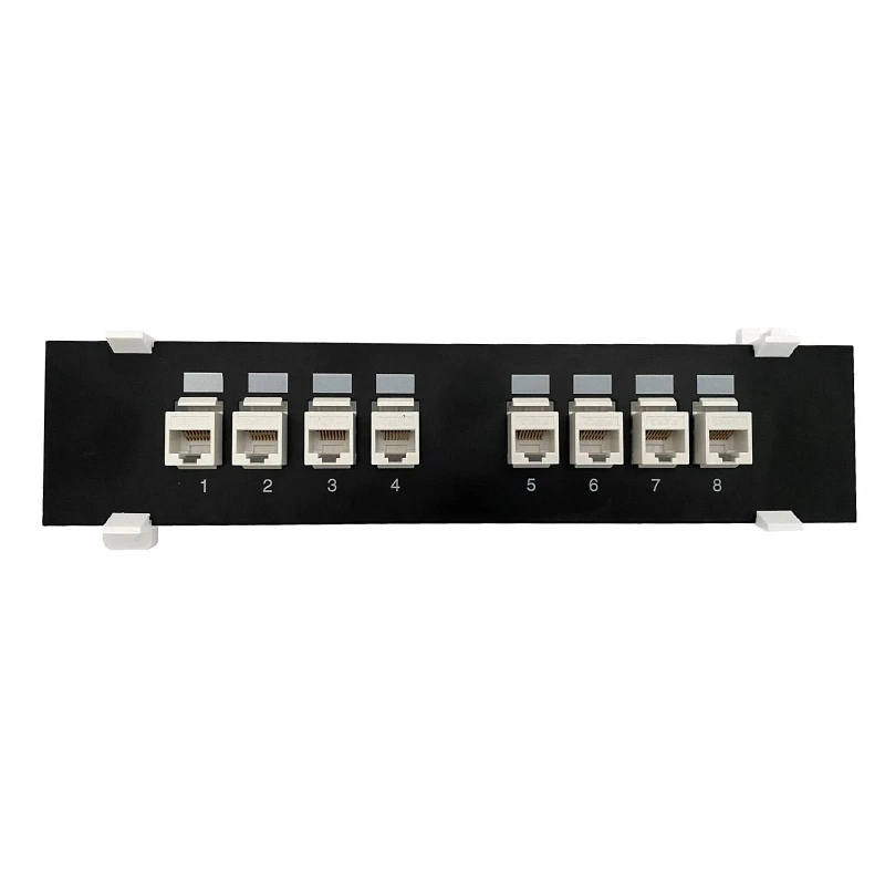 El panel de conexión de montaje en pared y montaje en rack viene con 8 puertos.