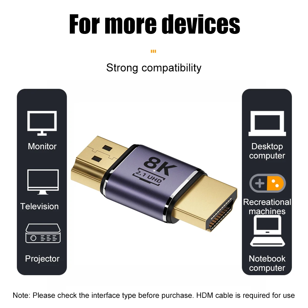 Adaptador de cable 8K 60Hz 2.1 macho a hembra Convertidor de 48Gbps Soporte divisor 4K 120Hz Codo/Extensor compatible con HDMI recto para proyector Computadora de escritorio
