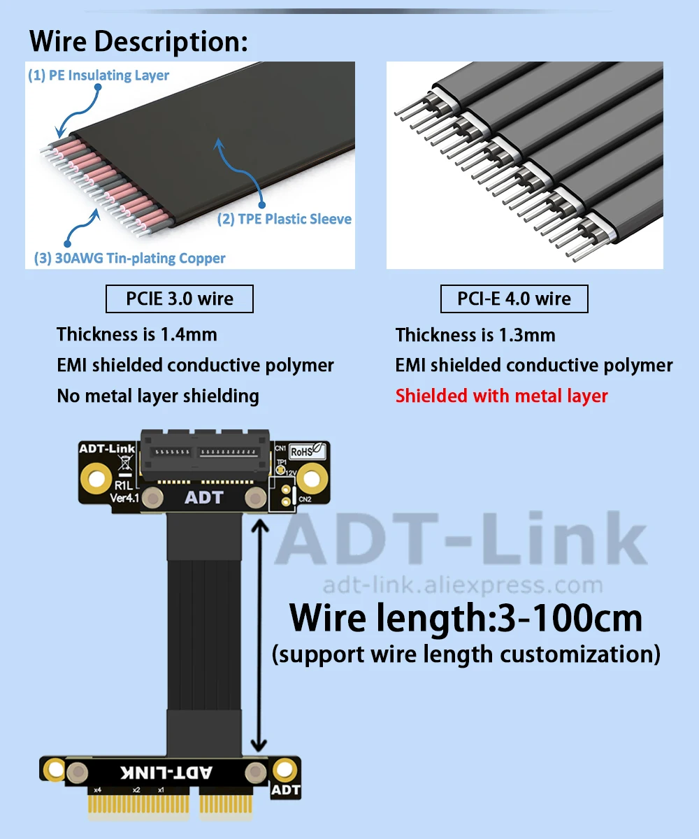 Restricciones de uso: PCIe 4,0 tiene altos requisitos en el equipo. Mientras el cable de extensión esté conectado, la señal se atenuará. Este producto no garantiza la velocidad completa de PCI-E 4,0. El equipo está envejecido. Si la señal es pobre o el ambiente no es bueno, por favor reduzca la velocidad a PCIe 3,0 o inferior.