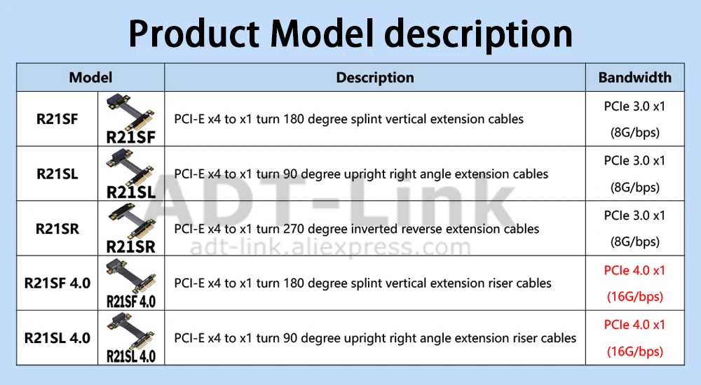R21SF 4,0, R21SL 4,0 (PCIe4.0 x1 , 16G/BPS (máx.)