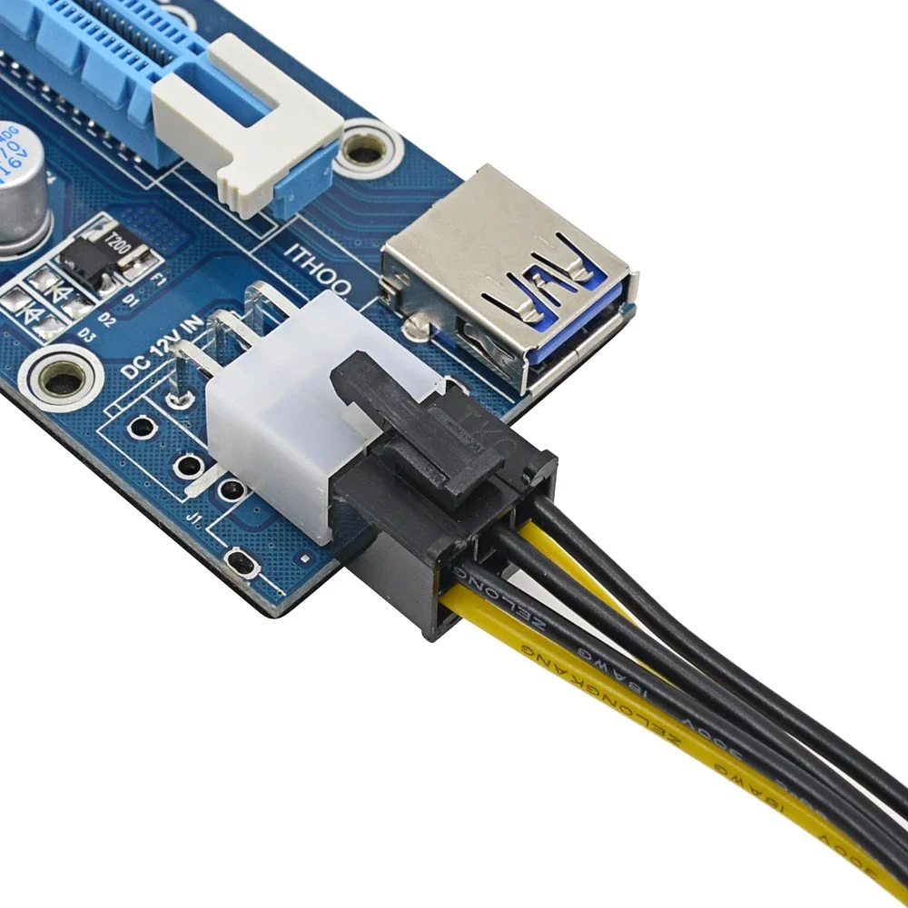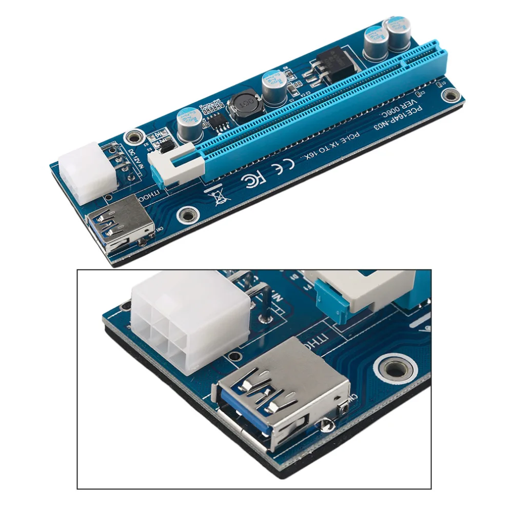 1.Esta extensión es aplicable a la ranura PCI - E de la placa base (1 x, 4 x, 8 x, 16 x).Conecte el cable de alimentación de la disquete.Cuando conecte la extensión PCI - E, los cables rotos de la computadora deben volver a enchufarse.