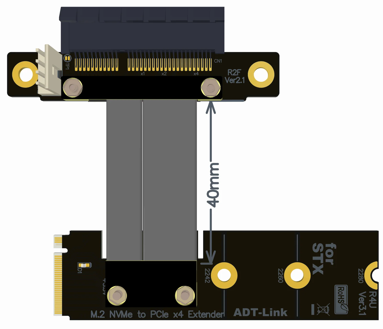 Nombre del producto: M.2 NVMe a PCIe X4Cable gire a la izquierdaCable alargador