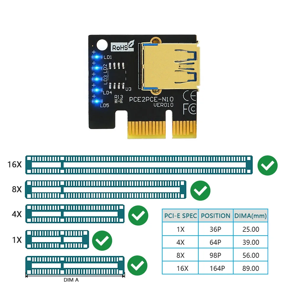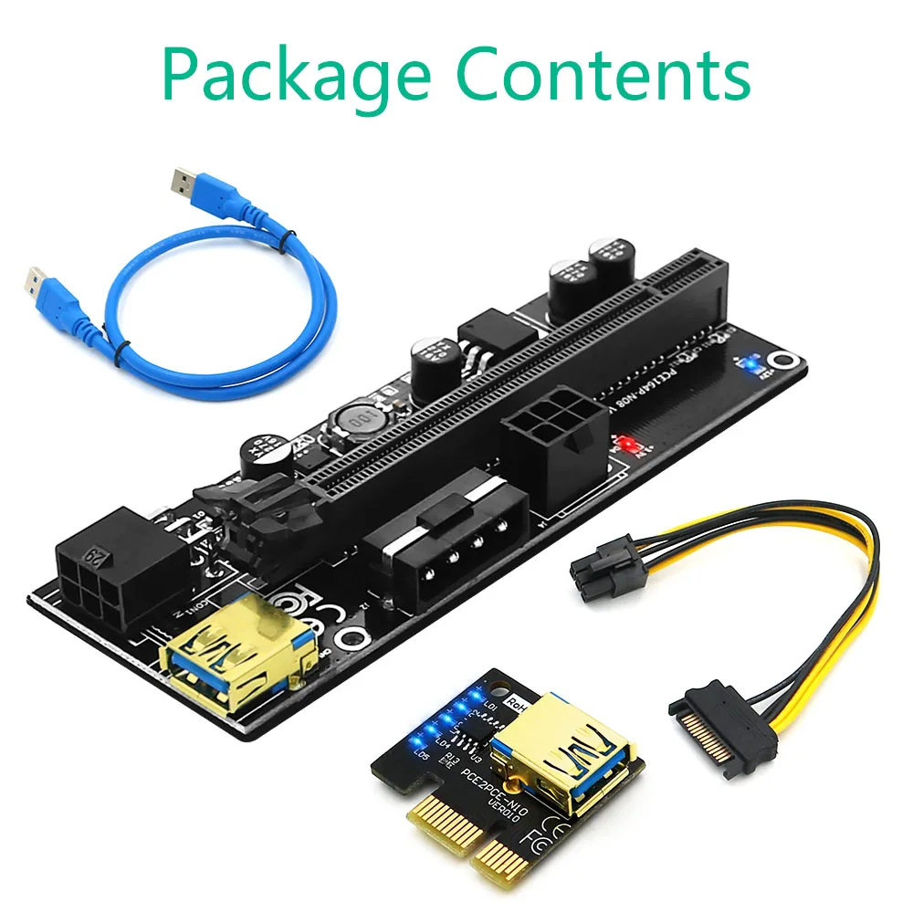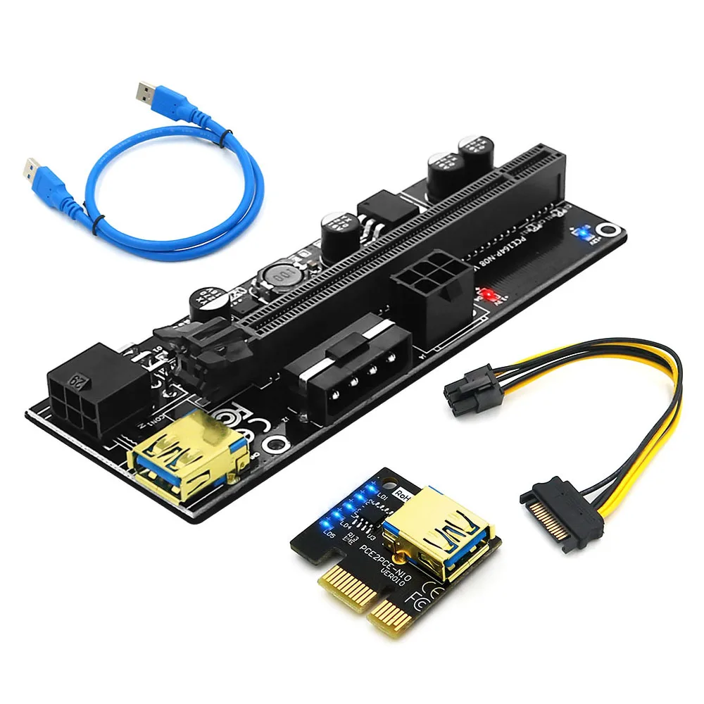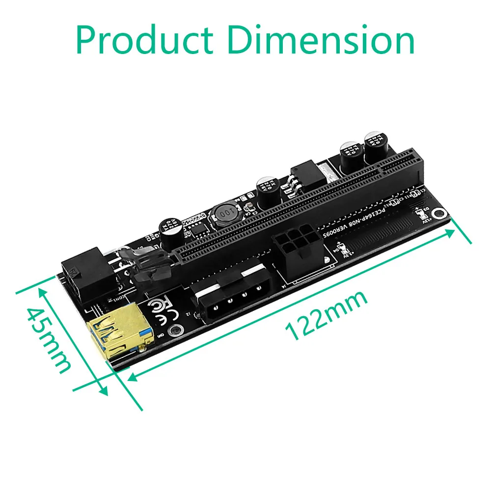 Comprar Adaptador extensor PCIE Riser 009S LED PCI Express 1X a 16X, elevador USB 3,0 para tarjeta de vídeo GPU, minería de Bitcoin, 1-10 piezas