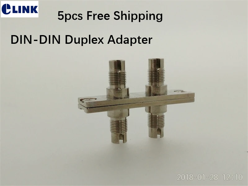 Adaptador de fibra dúplex DIN-DIN, carcasa de metal, acoplador DIN de fibra óptica plateada, conector ftth dx, envío gratis ELINK, 5 uds.