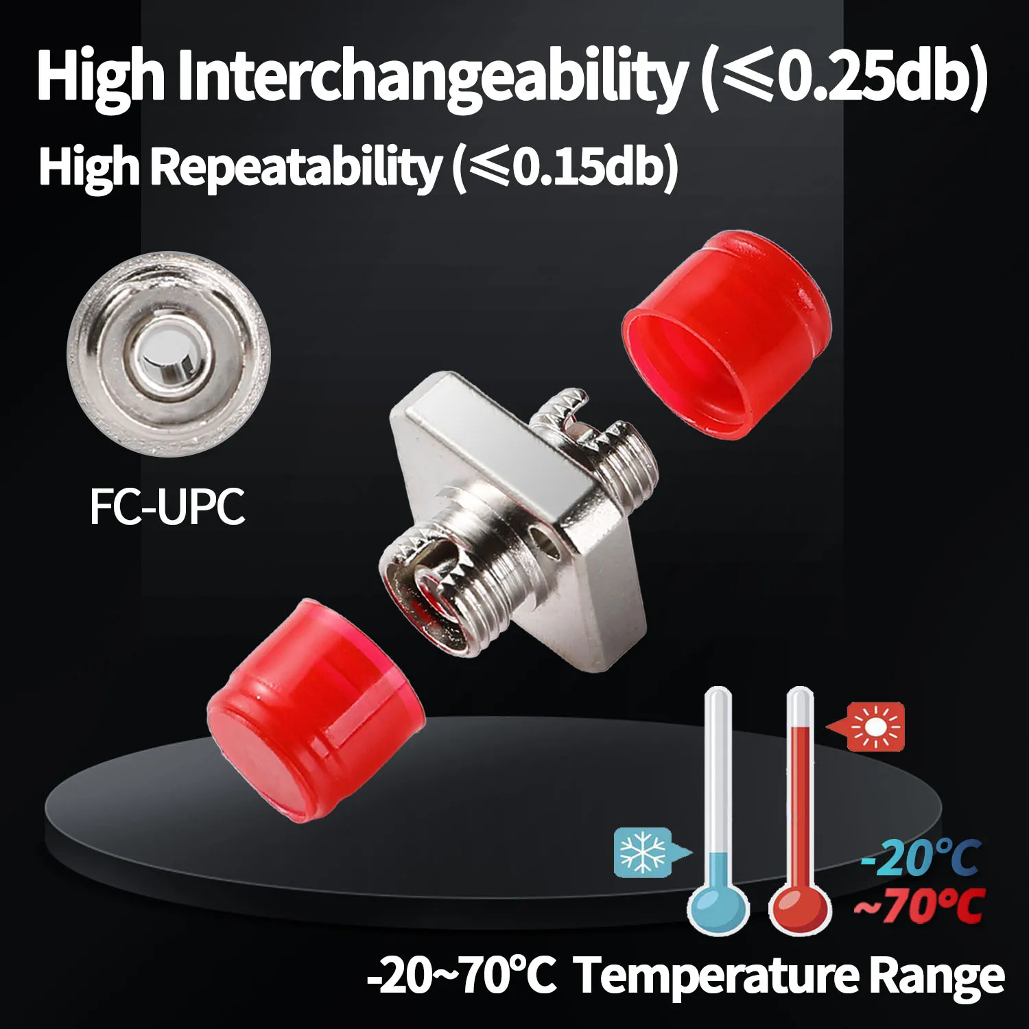 El acoplador FC a FC es un pequeño dispositivo diseñado para montarse en paneles de estilo recortado rectangular estándar, Y se puede utilizar para conectar cables de fibra óptica o conectores de fibra entre dos líneas de fibra óptica. El acoplador presenta una baja pérdida de inserción y durabilidad con un plástico antihongos para el ambiente húmedo y cuenta con una tapa antipolvo para Protege la instalación de fibra de desechos y otros contaminantes que pueden garantizar una funcionalidad óptima. Se puede utilizar ampliamente en bastidores de servidores, paneles de conexión, marcos de distribución óptica (ODF), CATV, red de acceso de banda ancha de fibra óptica, etc.