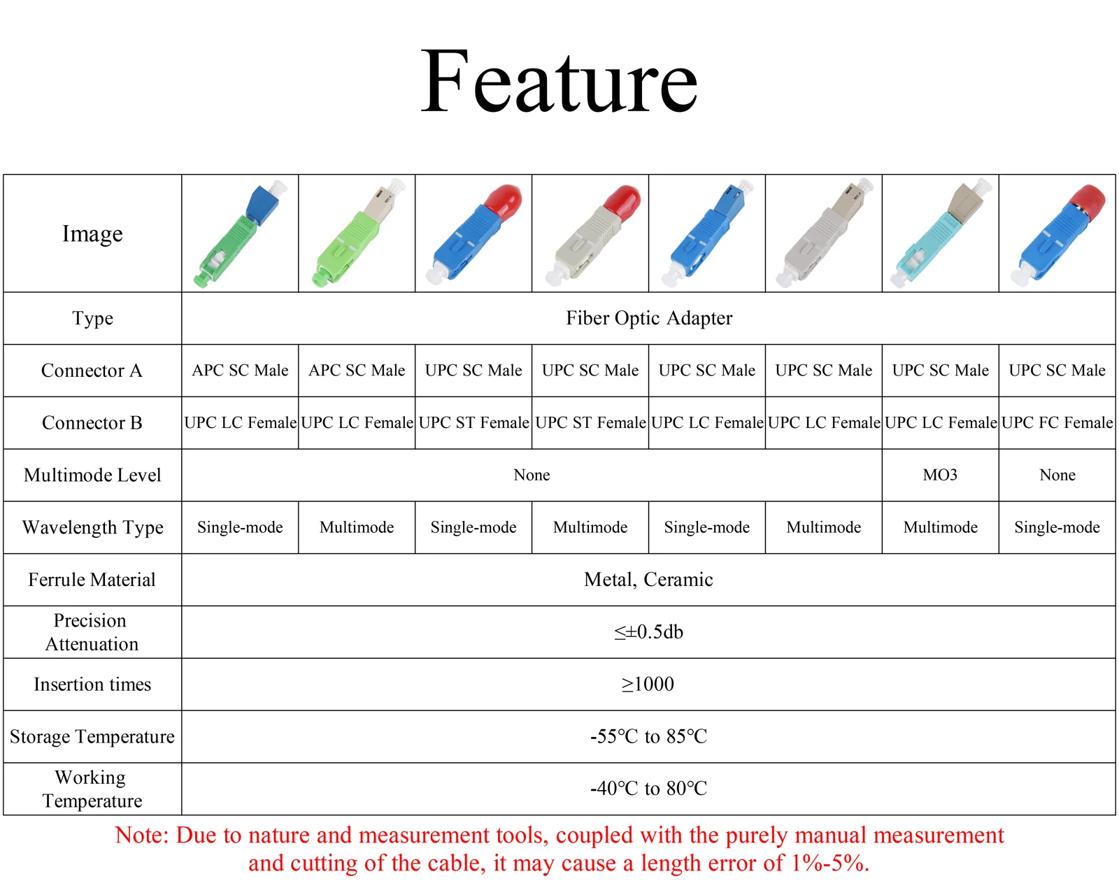 Note: Due to nature and measurement tools, coupled with the purely manual measurement and cutting of the cable, it may cause a length error of 1%-5%.