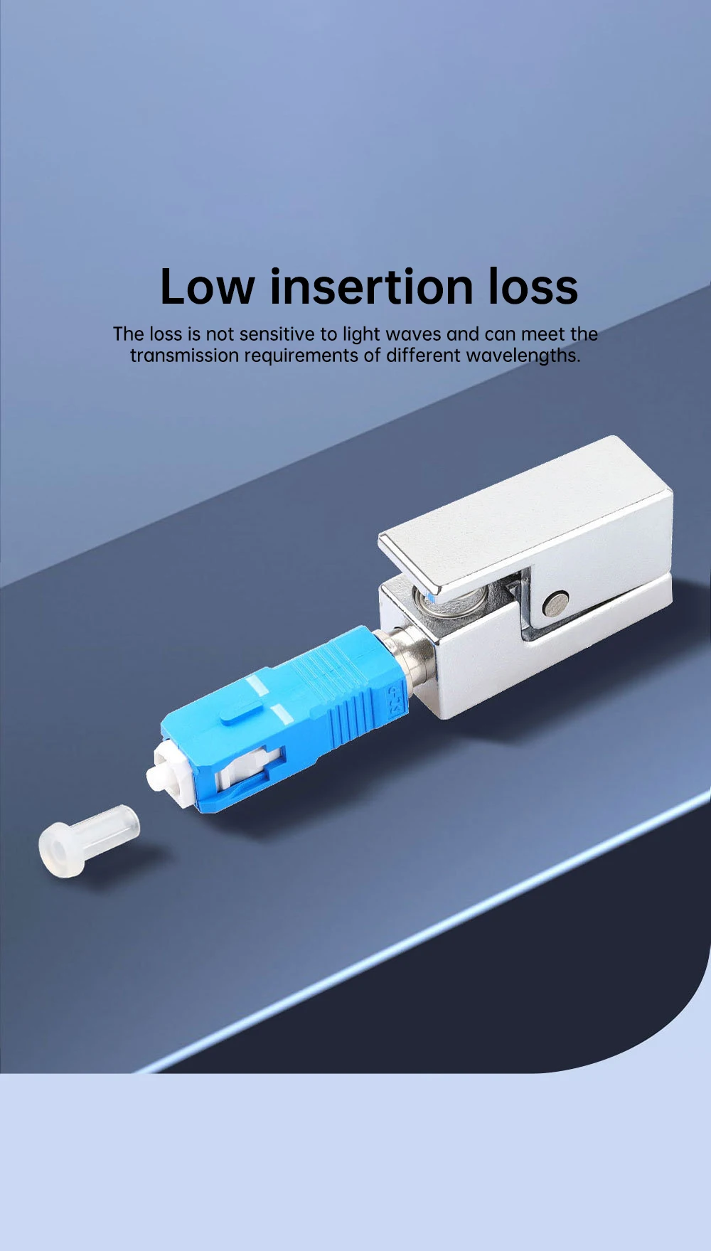 Indica que la pérdida de inserción del adaptador entre diferentes conectores es muy baja, asegurando la estabilidad de la transmisión de la señal.