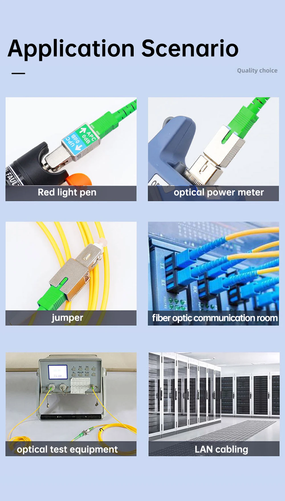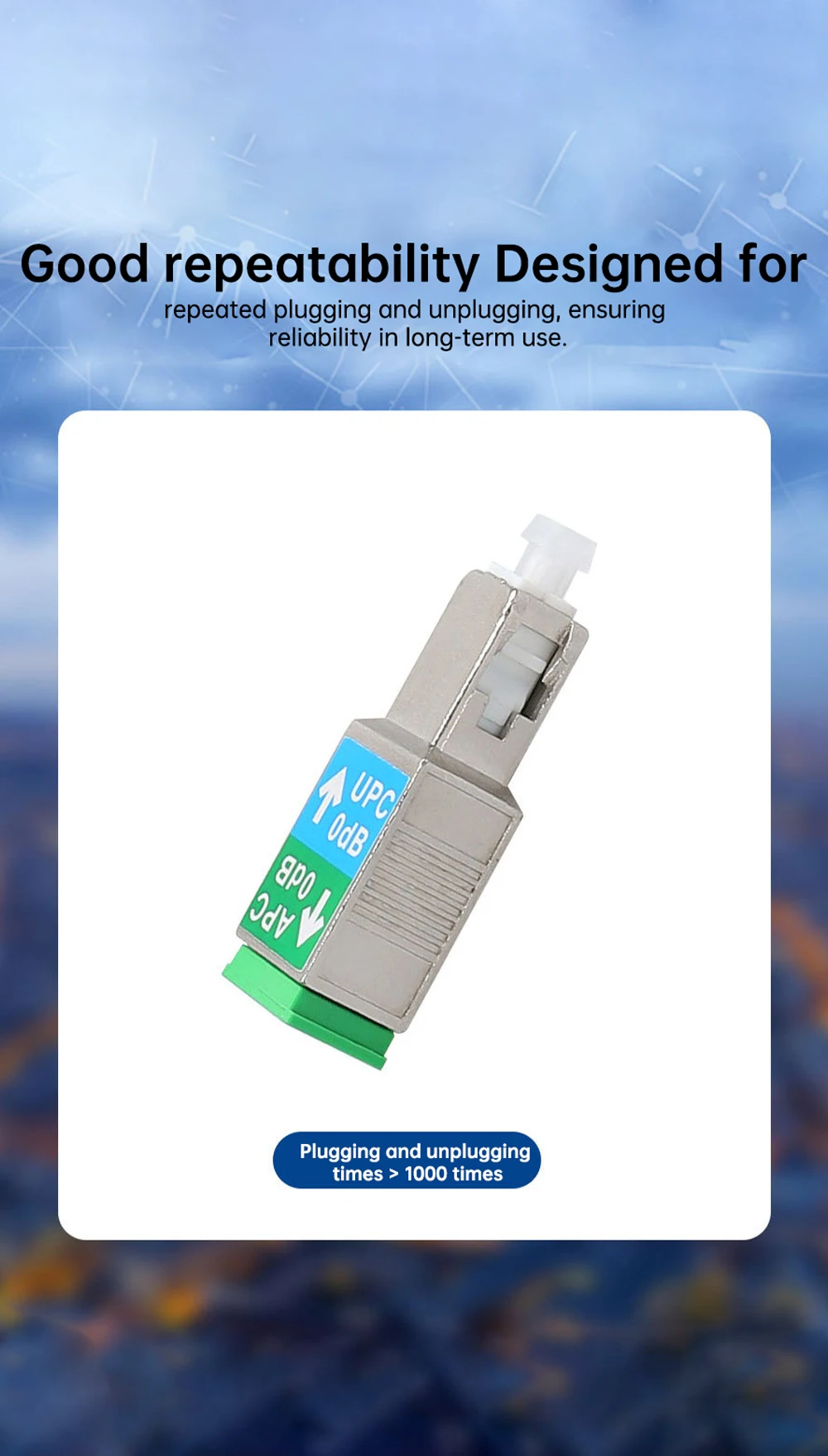 Indica que la pérdida de inserción del adaptador entre diferentes conectores es muy baja, asegurando la estabilidad de la transmisión de la señal.