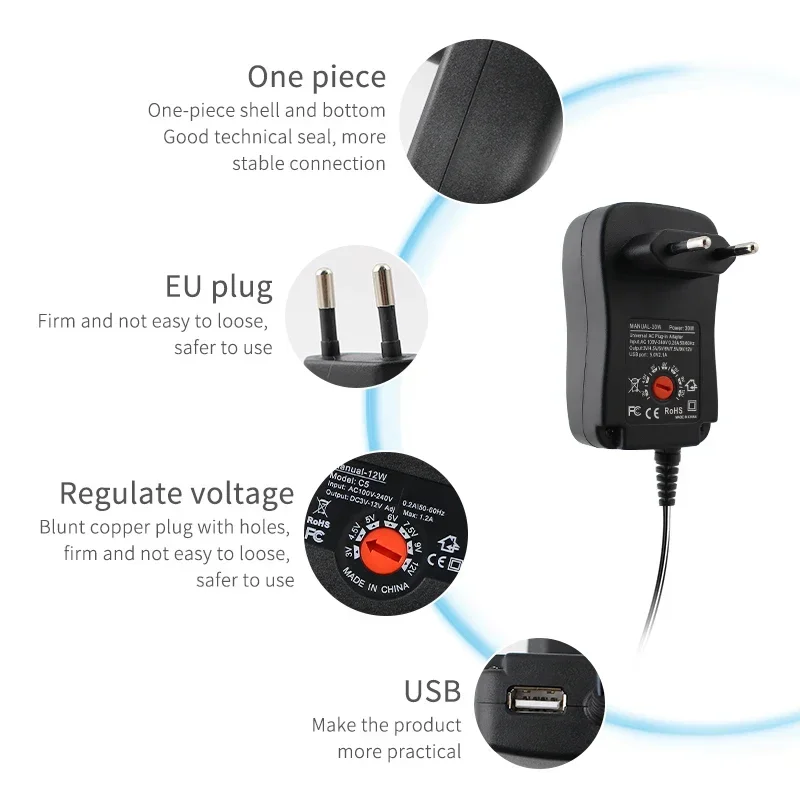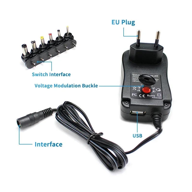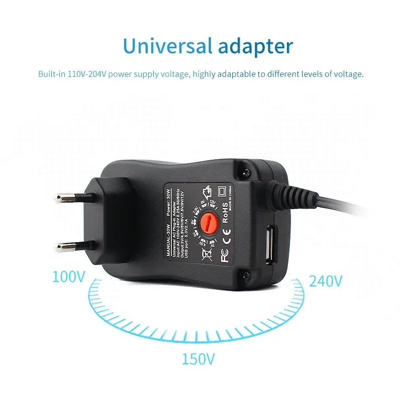 Comprar Adaptador de fuente de alimentación ajustable de 3-12V 3V 4,5 V 5V 6V 7,5 V 9V 12V 2A AC/DC 30W cargador adaptador Universal para tira de luz LED