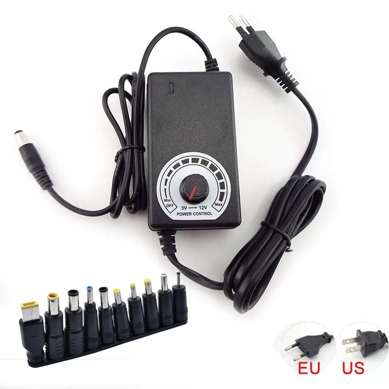 Comprar Adaptador de fuente de alimentación ajustable, Cargador Universal de 100mm x 240mm a puntas de conector macho multitipo, CA 5,5 V-2,1 V a CC 3-12V