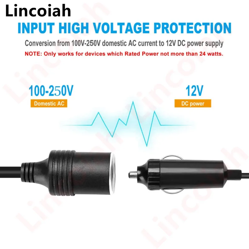 - 【AMPLIA COMPATIBILIDAD】La fuente de alimentación del encendedor de cigarrillos del coche Lincoiah 12V DC es conveniente de usar con cable extendido de 1,2 M, insértelo en cualquier toma de corriente en el hogar, use cualquier equipo electrónico que tenga toma de encendedor de cigarrillos, Convertidor de potencia CA a CC fácil de usar en todo el mundo para viajar/acampar.(*** NOTA: solo funciona para dispositivos con una potencia nominal de no más de 24 vatios. ***)
