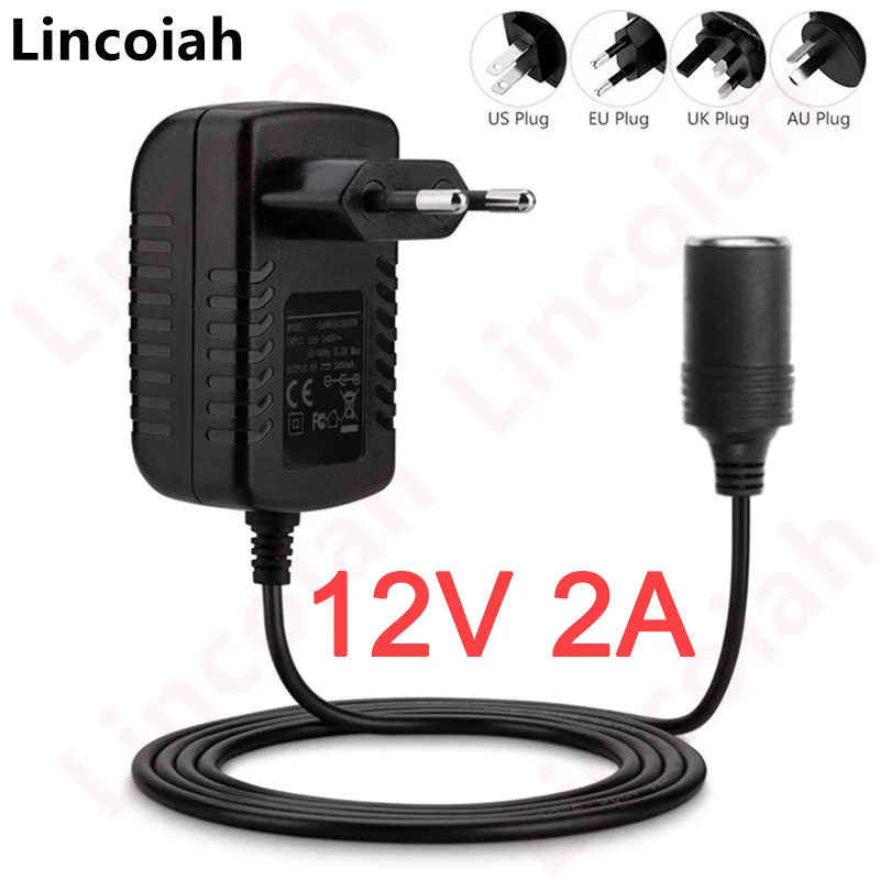 Lincoiah AC 110V/220V DC 12 V 2A para encendedor de cigarrillos de coche adaptador de corriente enchufe 220V a 12 V convertidor de cargador de voltios piezas para el hogar US/EU/UK/AU