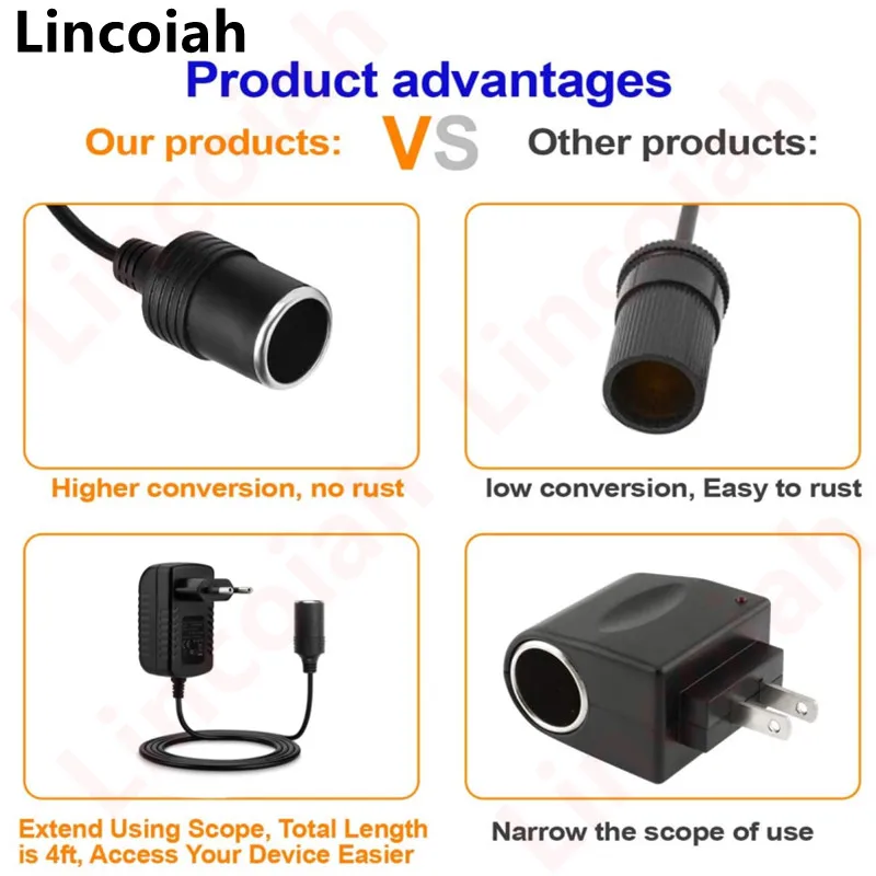 - 【AMPLIA COMPATIBILIDAD】La fuente de alimentación del encendedor de cigarrillos del coche Lincoiah 12V DC es conveniente de usar con cable extendido de 1,2 M, insértelo en cualquier toma de corriente en el hogar, use cualquier equipo electrónico que tenga toma de encendedor de cigarrillos, Convertidor de potencia CA a CC fácil de usar en todo el mundo para viajar/acampar.(*** NOTA: solo funciona para dispositivos con una potencia nominal de no más de 24 vatios. ***)