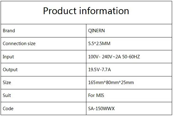 Item: 150W 19.5v 7.7A Notebook Laptop Power Adapter