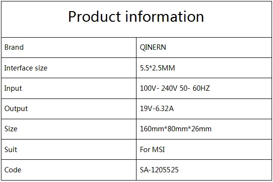 Item: 120W 19V 6.32A Notebook Laptop Power Adapter