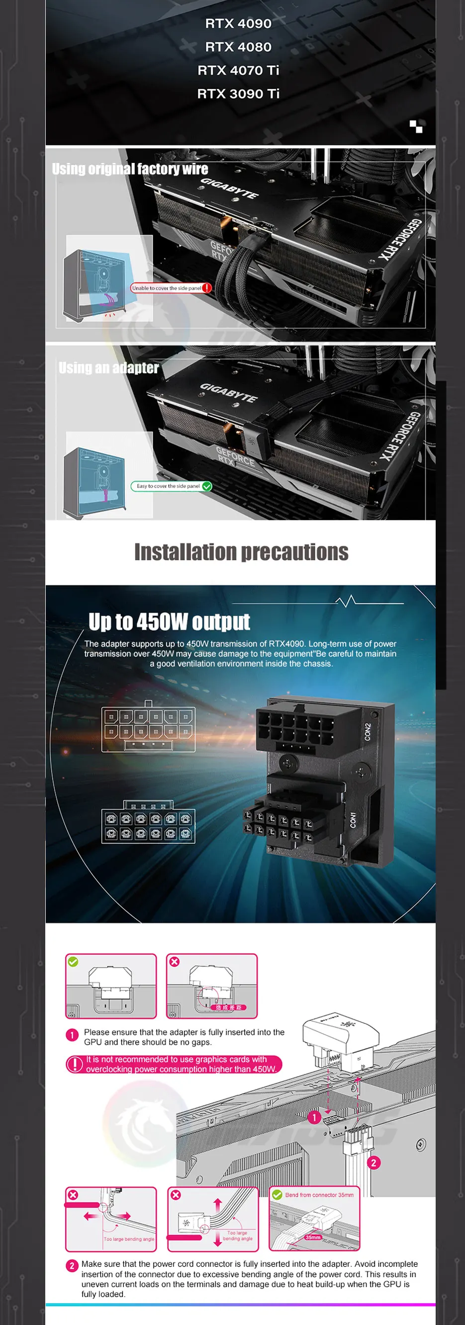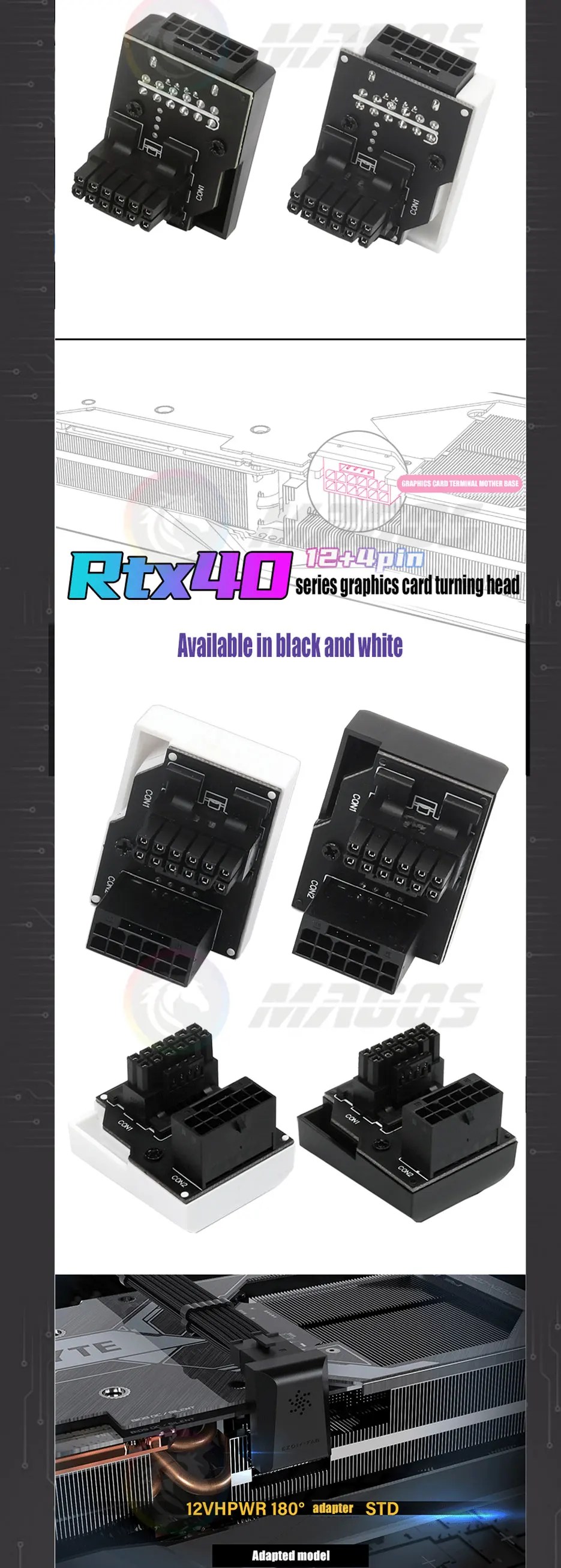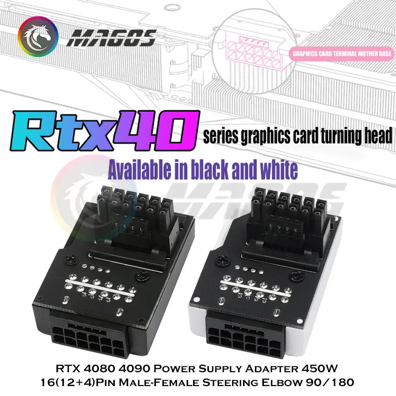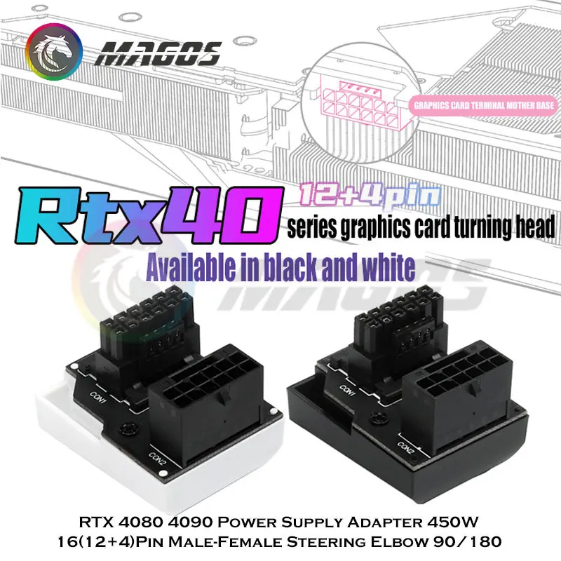 Comprar Adaptador de fuente de alimentación RTX 4080 4090, codo de dirección macho-hembra 450, 90/180 W, 16(12 + 4) Pines, negro/blanco