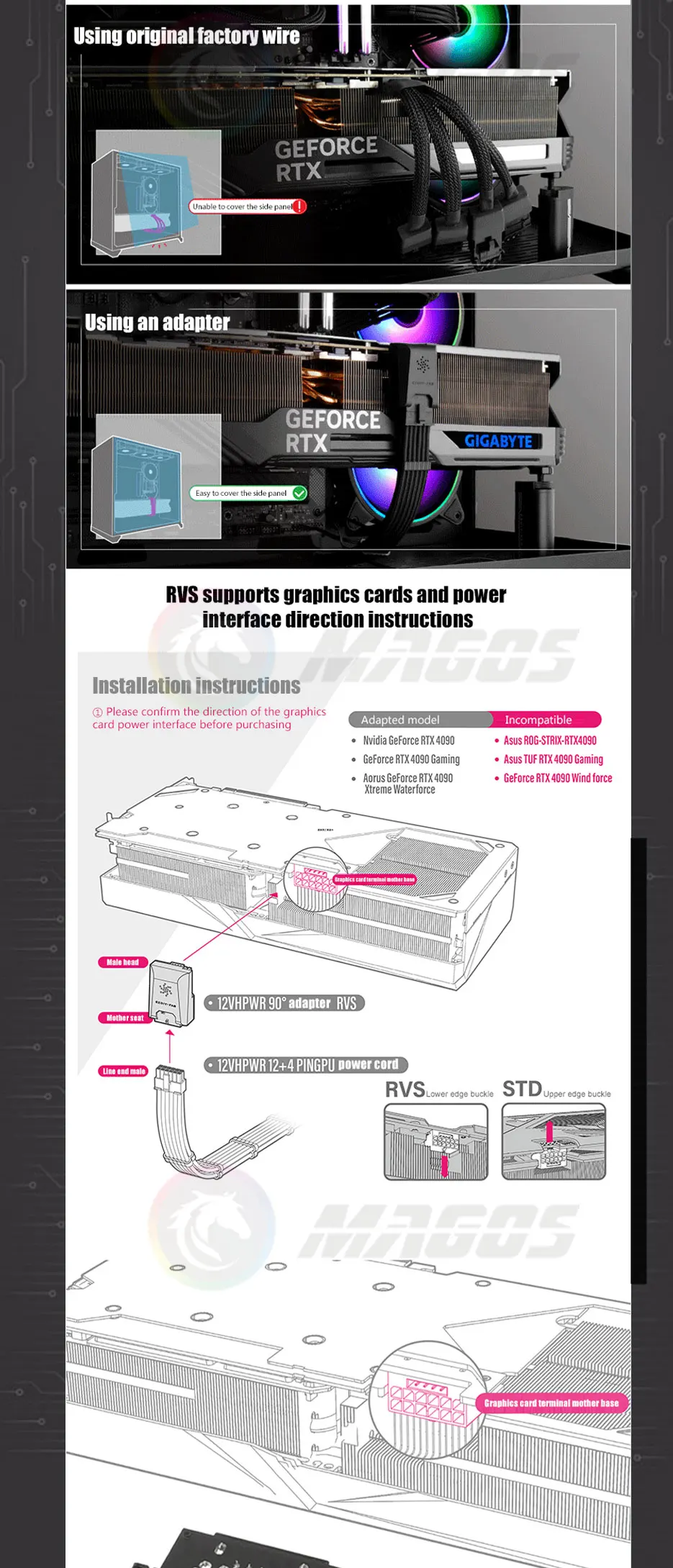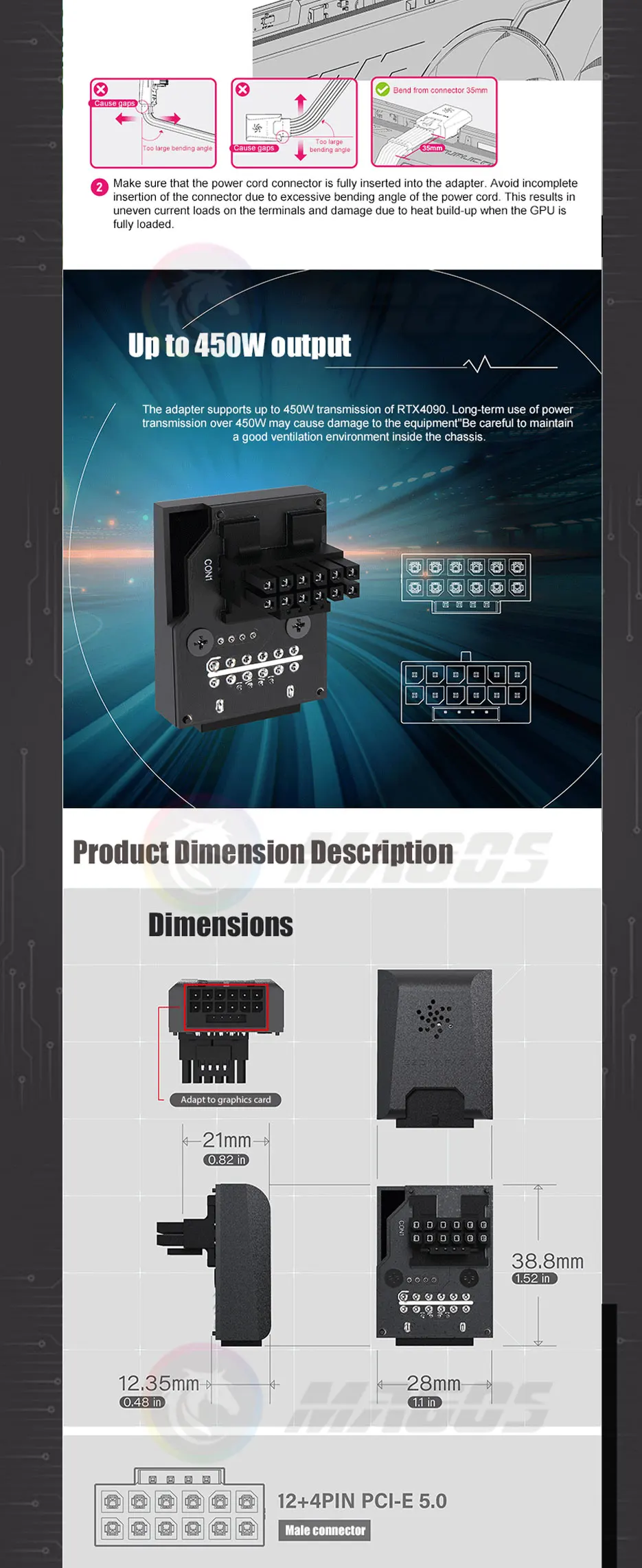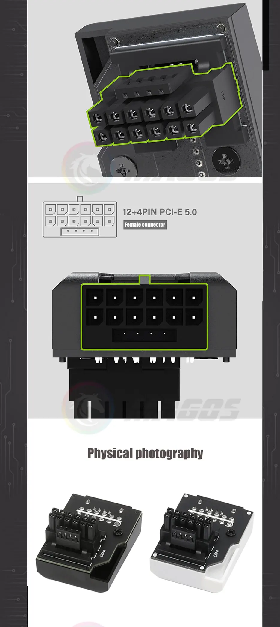 Comprar Adaptador de fuente de alimentación RTX 4080 4090, codo de dirección macho-hembra 450, 90/180 W, 16(12 + 4) Pines, negro/blanco