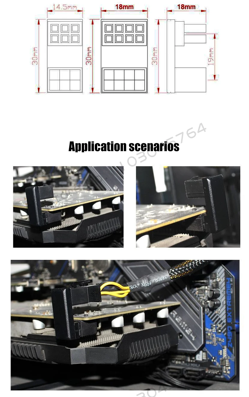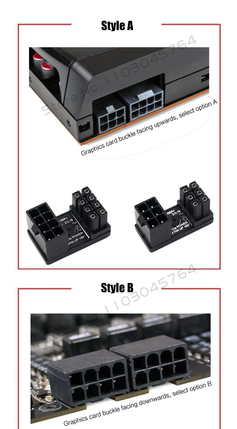 Adaptador de fuente de alimentación para tarjeta gráfica Codo 180 ° , Solución de artefacto de cableado giratorio PCI-E 6Pin 8Pin del conector de dirección de GPU PSU