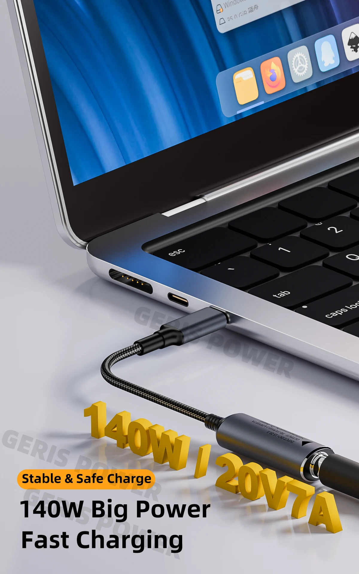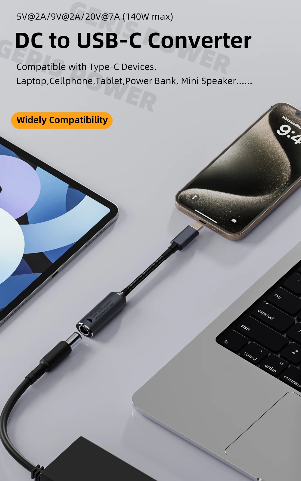 ¡Solo cable de enchufe CC convertidor!Consejos:La potencia del adaptador hembra debe ser la misma con o superior a la potencia de salida.Si el adaptador hembra es de 140 W, la salida tipo C es de 140 W (máx.), pero si el adaptador hembra es de solo 90 W, la salida tipo C es de 90 W, no de 140 W.Sugerimos tomar un cargador USB C PD de 140 W para cargarlo juntos..