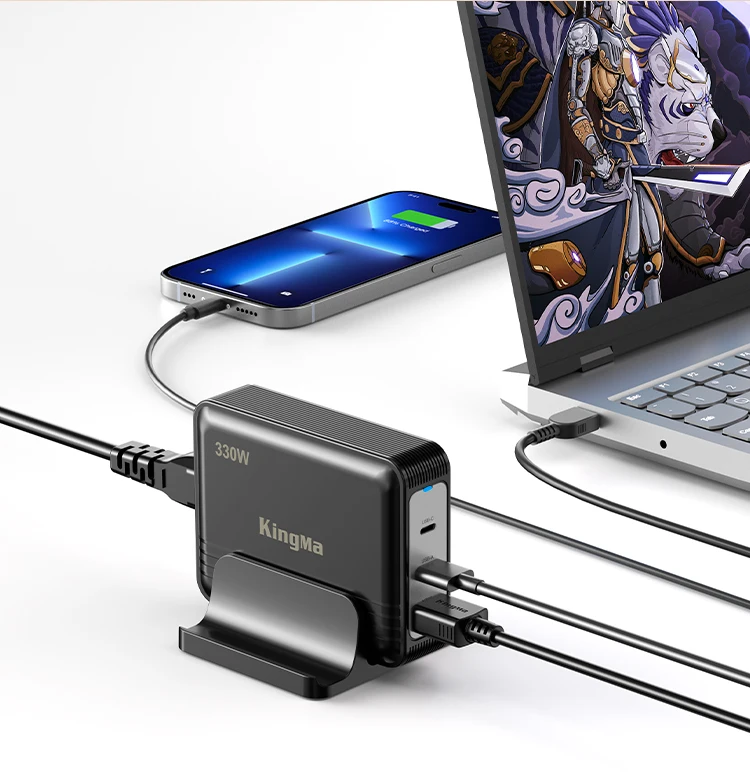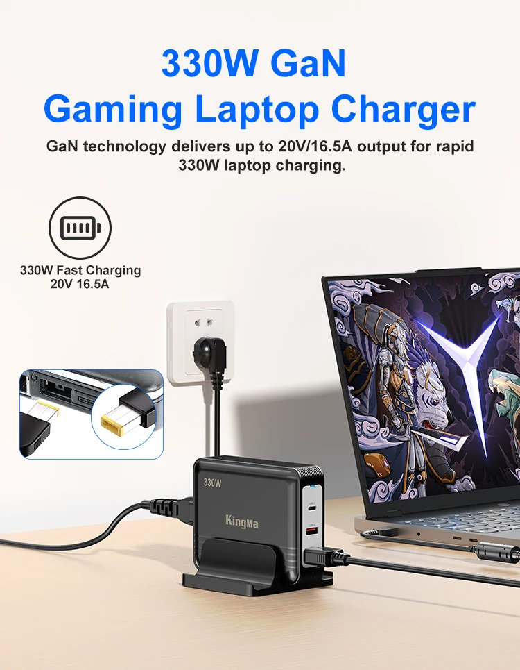 El King Ma es hasta un 50% más pequeño y ligero que otros cargadores de portátiles de la misma categoría de potencia. Tamaño 3,40x1,28x4,47 pulgadas. (AnxAlxL)/86,5x32,5x113,5mm. Con solo 17,46 oz. / 490g de peso. Lo suficientemente pequeño y ligero como para llevarlo con usted dondequiera que vaya. Le hemos equipado con un soporte de escritorio que puede sostener este cargador y se puede utilizar como un soporte para teléfono móvil. Es la mejor opción para viajes de negocios.