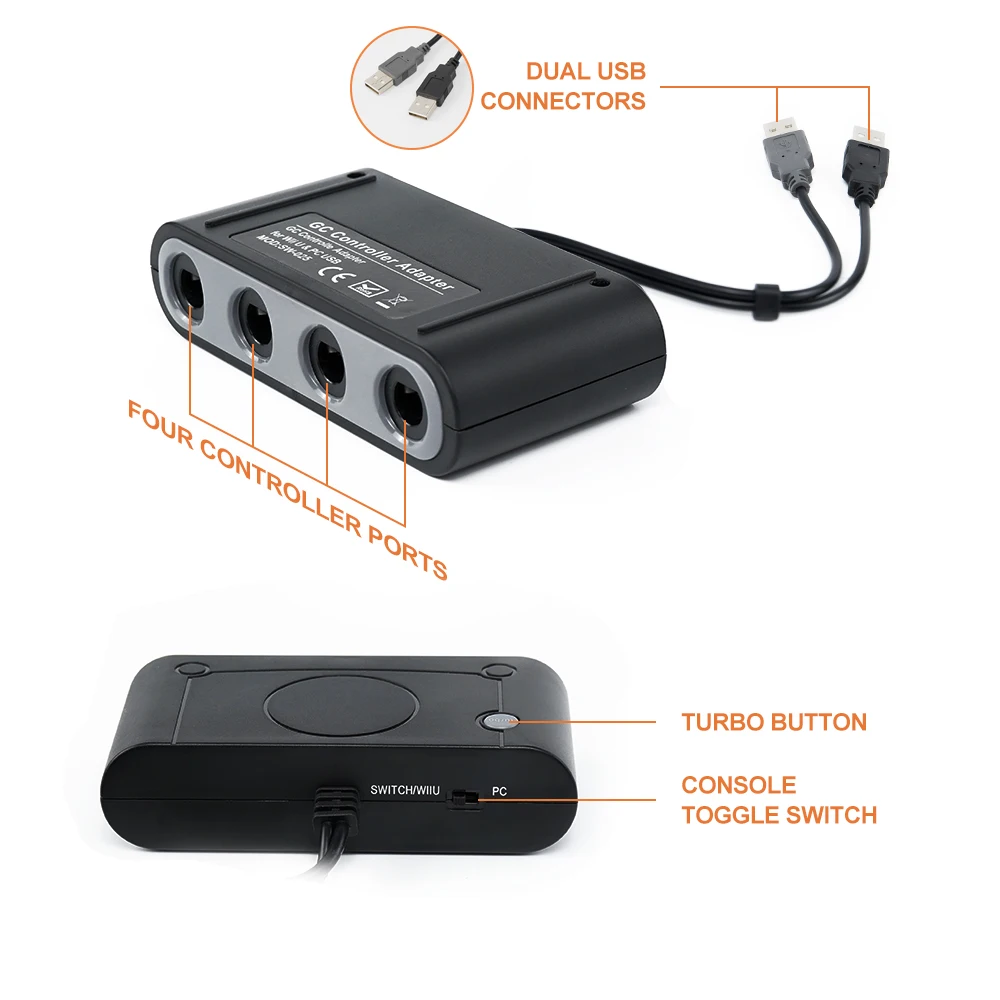 Comprar Adaptador GC a Wii Compatible con Switch/Wii U/PC, convertidor de Control de 4 puertos, accesorios, receptor remoto con cable USB