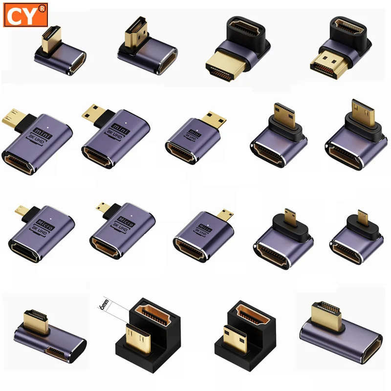 Comprar Adaptador de género Mini HDMI en forma de U de 360 grados 180 Micro HDMI macho a HDMI hembra convertidor L en ángulo HD 2,1 V PS4 5 extensión 4K 8K