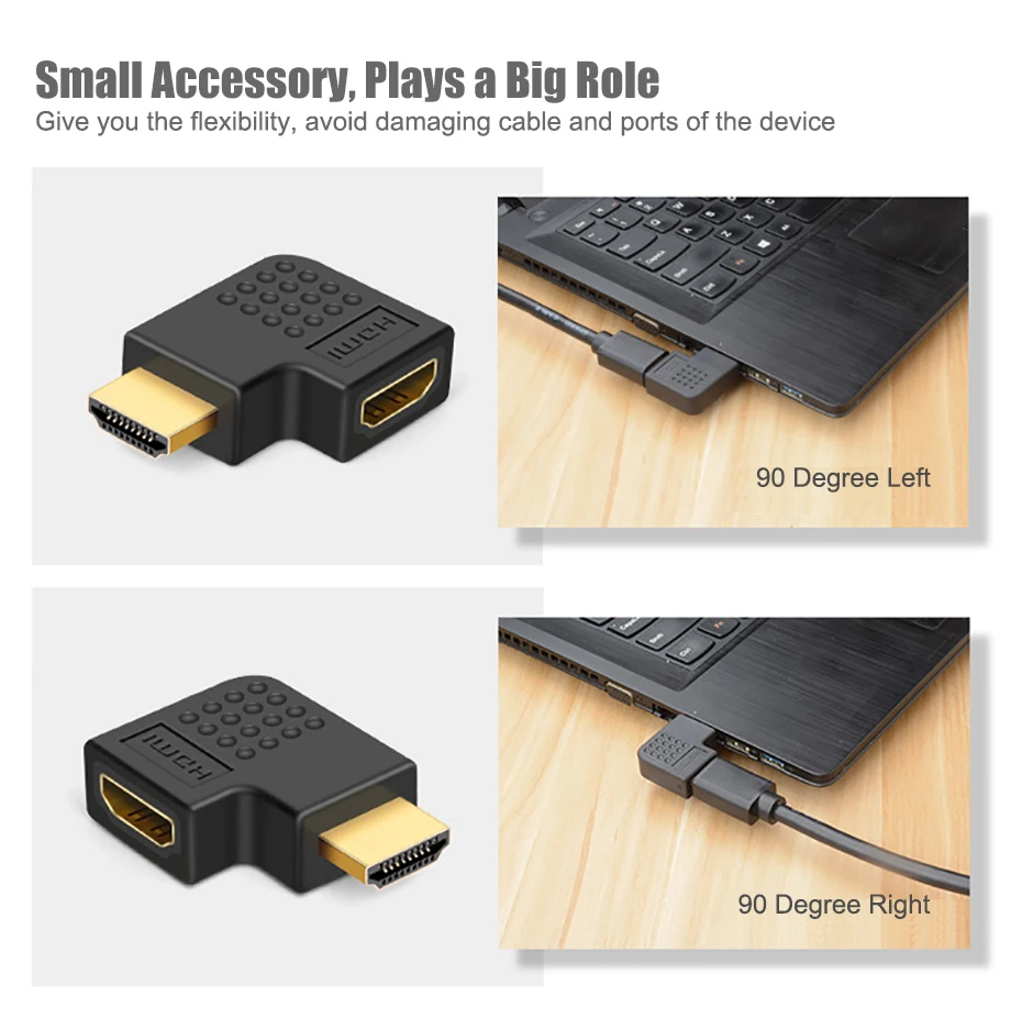 Comprar Adaptador HD Kabel Stecker 90 Grad Winkel hd-kompatibel mänlichen zu Weiblichen Konverter, adaptador extensible HDTV 1080P