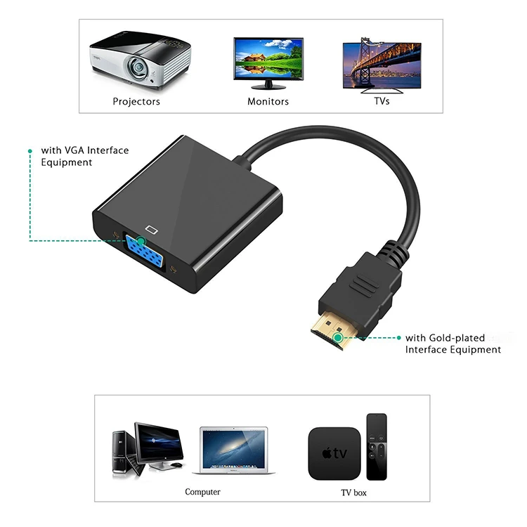 Comprar Adaptador de HDM1-compatible a VGA para Xbox, PS4, PC, portátil, TV Box, proyector, HDTV