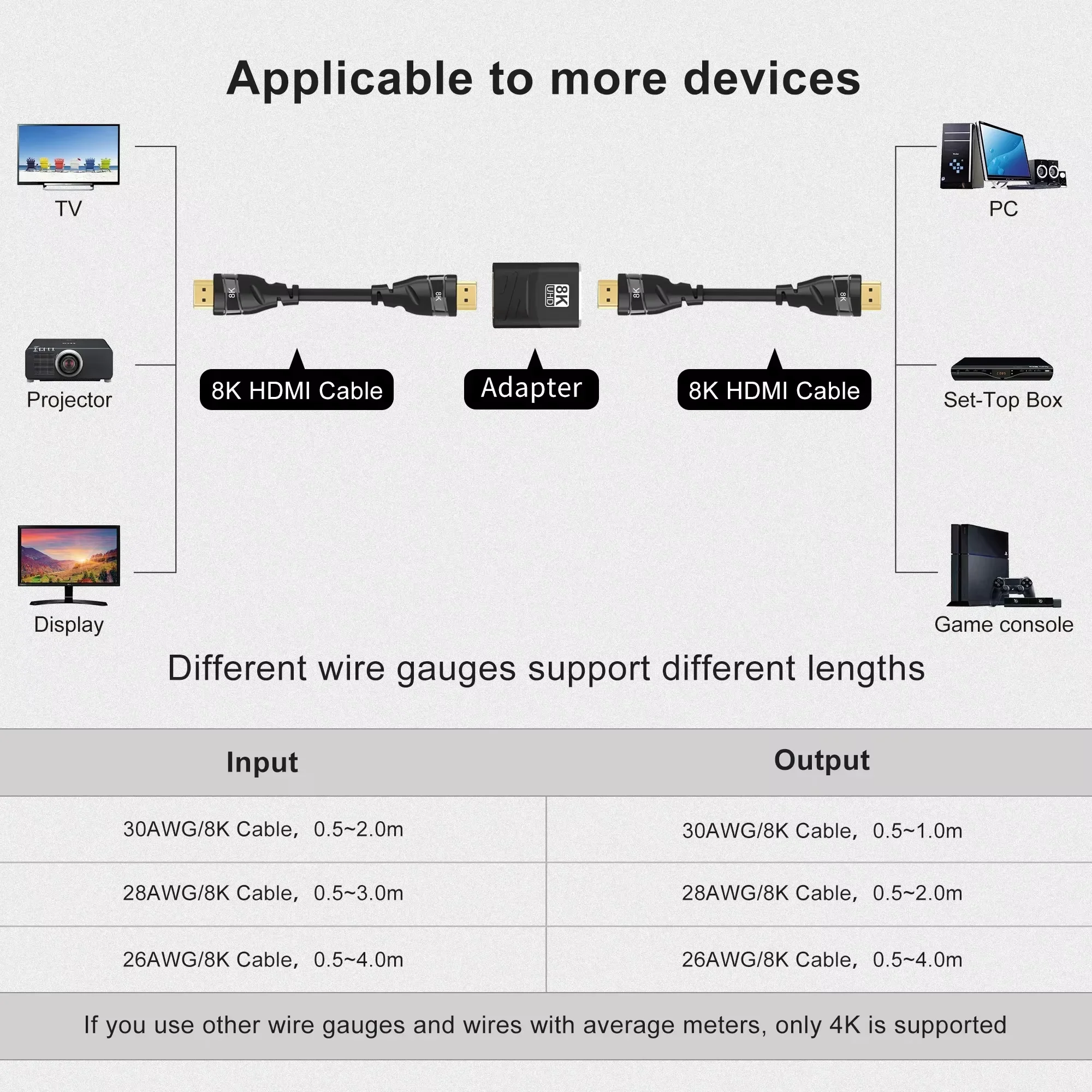 Adaptador HDMI 2.1 de 8K, compatible con 8K@60Hz 4K@120Hz