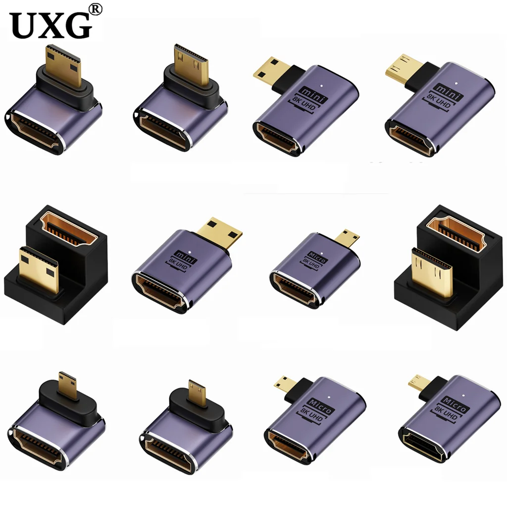 Comprar Adaptador Hdmi 360 180 90 grados en ángulo recto Mini Micro macho a HDMI hembra forma de U tipo L UHD 8K 48Gbps HDTV 2,1 V convertidor, 1 ud.