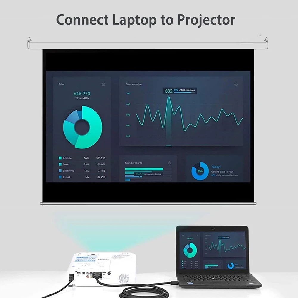 【Gran practicidad】 Coloque este dispositivo liviano en su bolso para realizar una presentación comercial con su computadora portátil y proyector, o extienda la pantalla de su escritorio a un monitor o televisor.