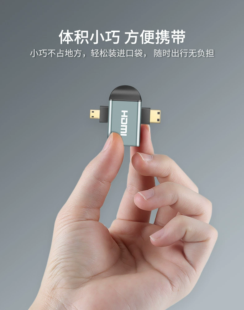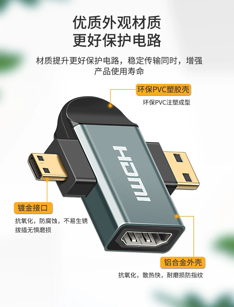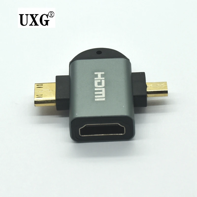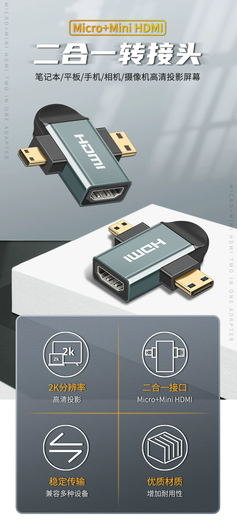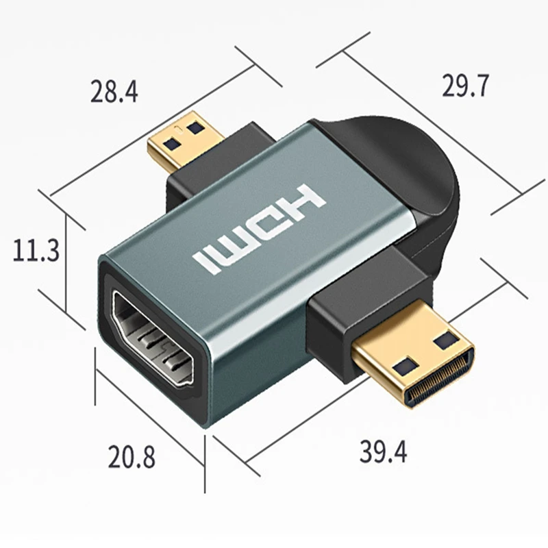Mini HDMI revolution HDMI adaptador hembra carcasa de aleación de aluminio HDMI dos en uno Conector micro revolution