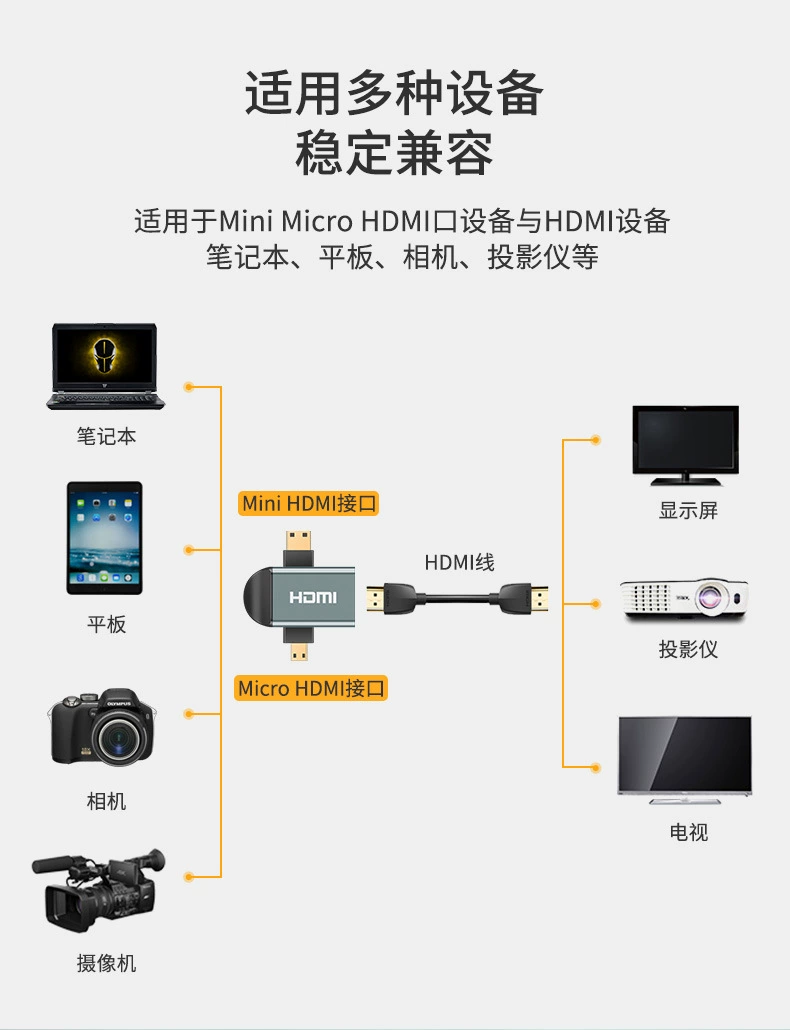 Comprar Adaptador hembra compatible con HDTV Mini HD revolution de alta velocidad, carcasa de aleación de aluminio, Conector micro revolution dos en uno