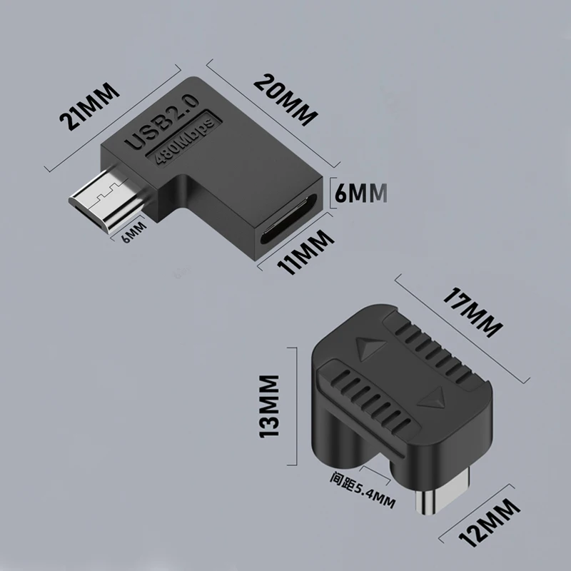 Adaptador hembra tipo C de 90 grados a Micro USB macho USB2.0 en forma de U 5V2A convertidor de carga conector de 10W 480Mbps para Xiaomi Huawei