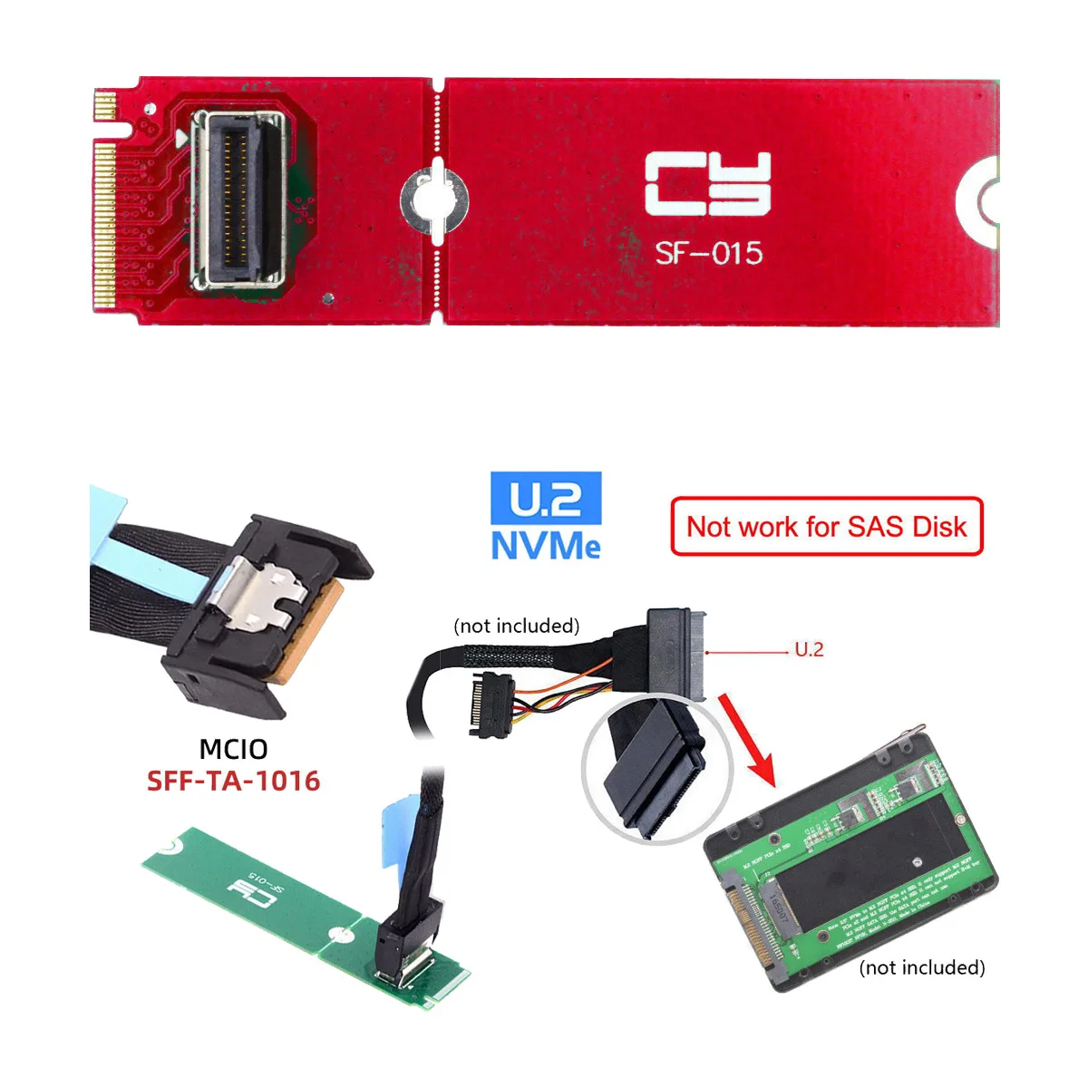 Comprar Adaptador de Host hembra M.2 NVME a U.2 MCIO para PCIe Nvme SSD 2230 2280 PCI-E 5,0 NGFF tarjeta adaptadora MCIO Mini Cool Edge IO 38PIN