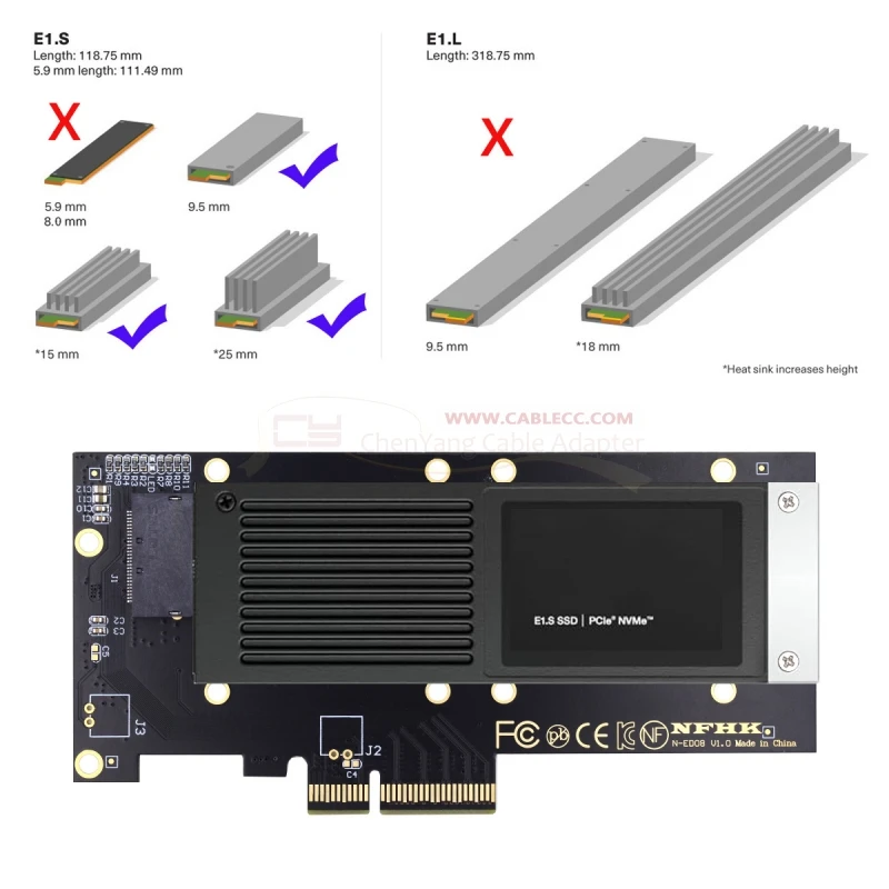 Comprar Adaptador de Host PCI-E4.0 a NVMe, regla 1U, GEN-Z, EDSFF E1.S, espesor corto, SSD, 5,9mm, 8,0mm, 4X