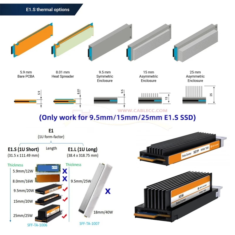 Este convertidor permite la conexión de un SSD de 2. ª generación en E1.S. Apto para SSD de 9,5mm, 15mm y 25mm de espesor con disipador de calor (como PM9A3 PM9D3 P5801X).