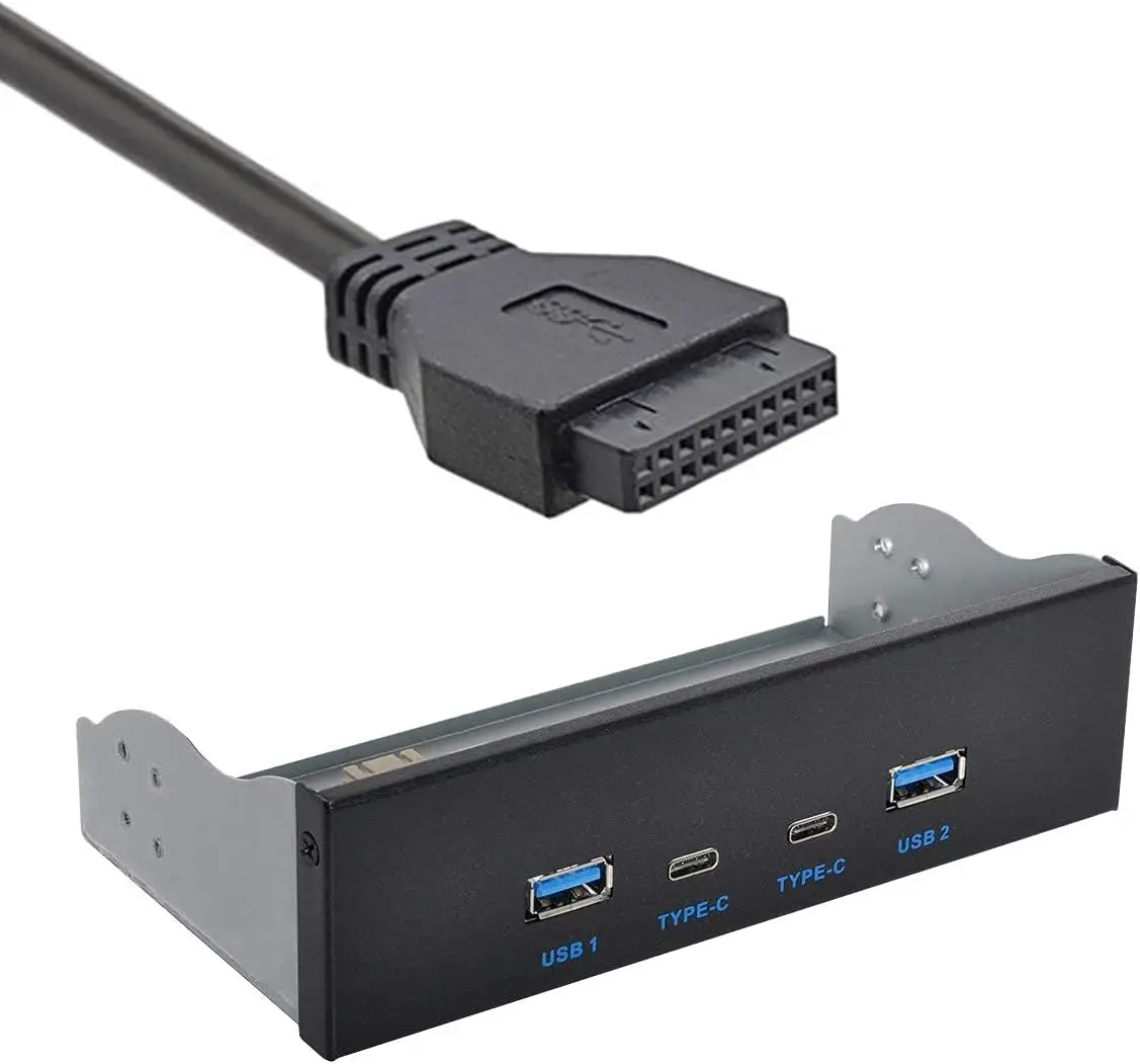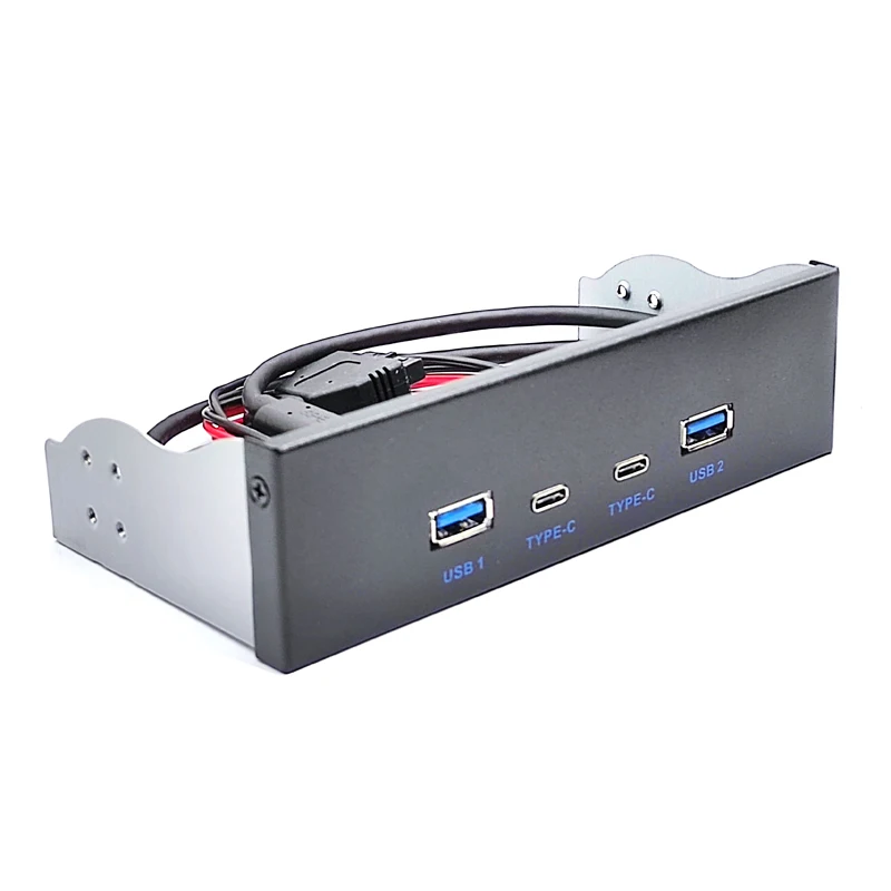 Panel frontal USB 3.0 para PC 2 puertos USB TIPO C + 2 puertos USB3.0 adaptador de concentrador chip GL3523 USB 3.2 Gen1 5 Gbps para Bay de unidad de CD-ROM de 5,25"