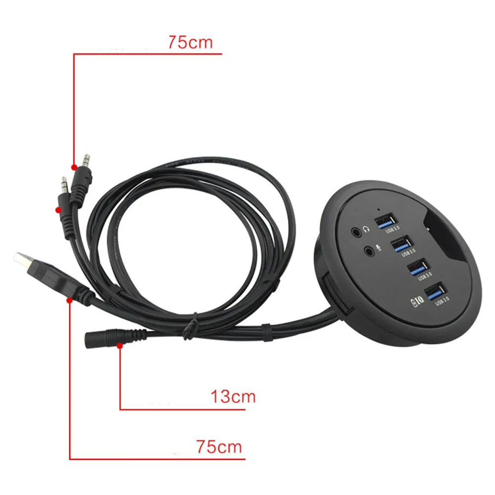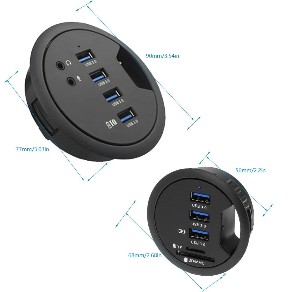 Comprar Adaptador HUB USB 3,0, montaje de carga de escritorio, concentrador USB 3,0 de 3/4 puertos con adaptador de sonido estéreo externo, lector de tarjetas SD combinado
