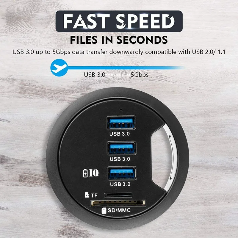 Comprar Adaptador HUB USB 3,0, montaje de carga de escritorio, concentrador USB 3,0 de 3/4 puertos con adaptador de sonido estéreo externo, lector de tarjetas SD combinado