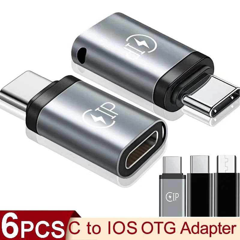 Comprar Adaptador de iluminación IOS hembra a tipo C macho, convertidor de carga de datos para IPhone 15, 14, 13, 12, Conector Micro USB C OTG, 6/1 Uds.