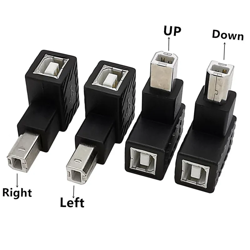 Adaptador de impresión USB 2,0 tipo B, 90 grados arriba abajo, ángulo izquierdo y derecho, extensor de enchufe, convertidor macho a hembra para Escáner de impresora