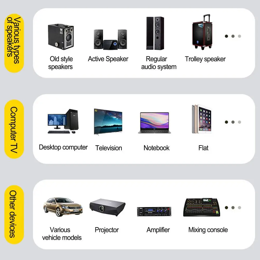 Conecte sin esfuerzo su dispositivo a su sistema de audio con una entrada de 3,5mm y disfrute de una calidad de sonido increíble. Con libertad inalámbrica, puede escuchar música en cualquier momento y en cualquier lugar. Además, admite la reproducción de tarjetas TF y se adapta a dispositivos de audio con entrada de 3,5mm.
