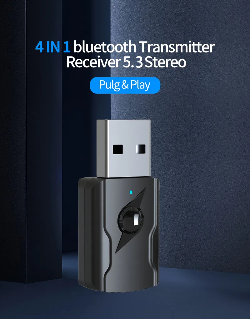 Transmisor receptor 4 en 1Plug and Play Mini 3 5mm Jack AUX USB estéreo música inalámbrico Bluetooth 5,3 Dongle receptor de Audio