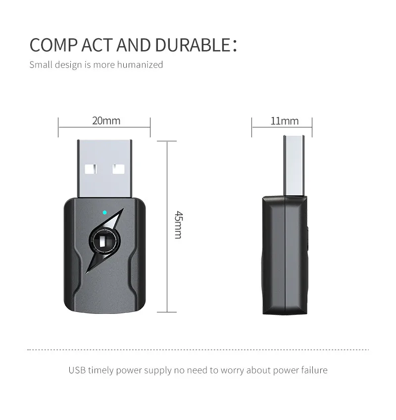 2. Modo de transmisor de audio para PC: transfiere audio de forma inalámbrica desde el PC, portátil a auriculares Bluetooth o altavoz a través del puerto USB, no se requiere cable de audio.