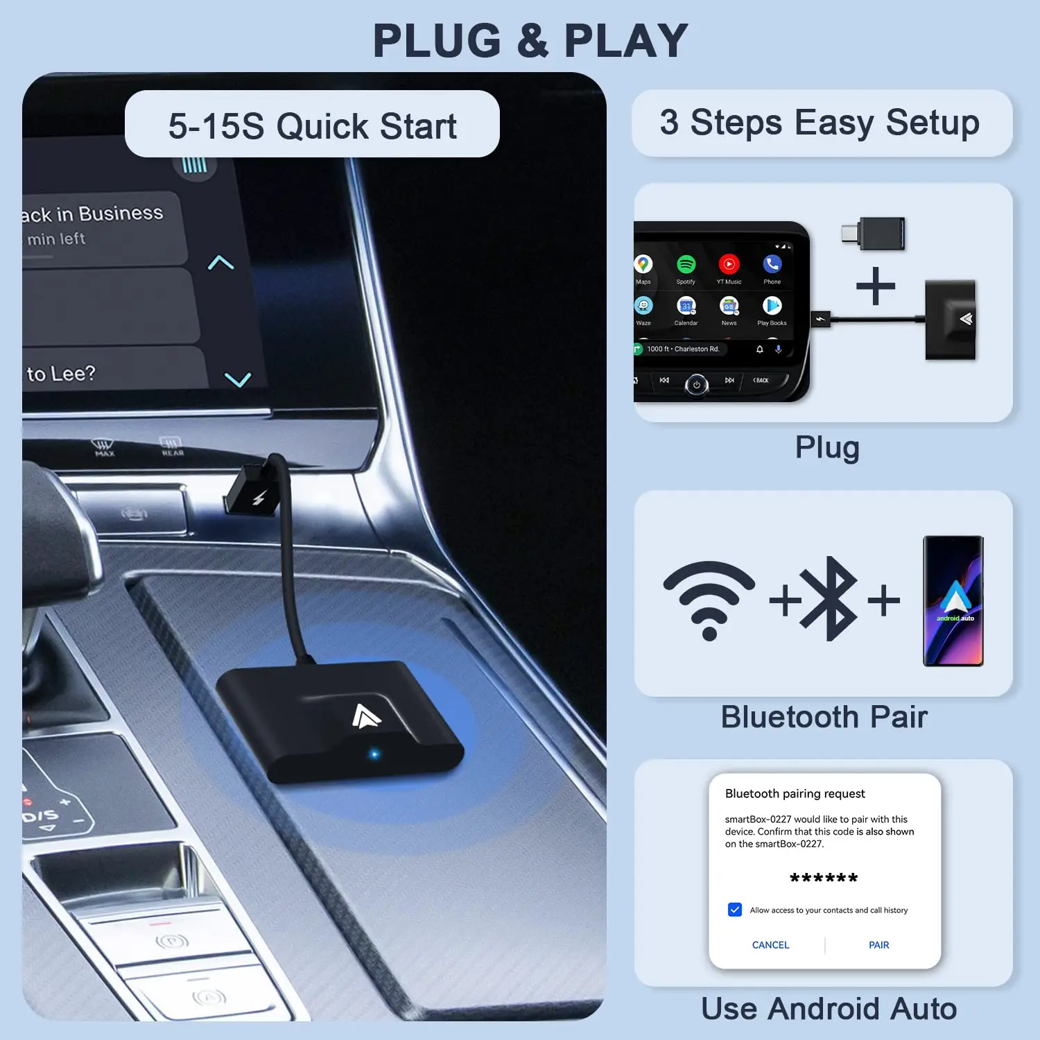 Es muy fácil convertir su Android Auto con cable a inalámbrico con el adaptador inalámbrico Android Auto de NOKI